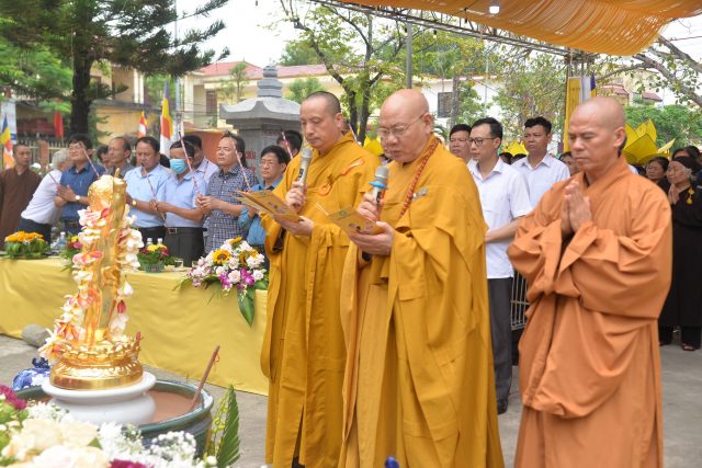 Quang lâm chứng minh và tham dự đại lễ có: HT. Thích Quảng Tùng – Phó Chủ tịch HĐTS, trưởng Ban trị sự GHPGVN thành phố Hải Phòng; HT. Thích Thanh Giác – Ủy viên HĐTS, Phó trưởng Ban thường trực BTS GHPGVN thành phố; TT.Thích Thanh Hiển – Uỷ viên thường trực, Chánh Thư ký BTS GHPGVN thành phố; TT. Thích Quảng Minh – Ủy viên thường trực, Trưởng Ban văn hoá GHPGVN thành phố, Trưởng Ban trị sự GHPGVN huyện Tiên Lãng, cùng đông đảo chư tôn đức tăng, ni trụ trì các chùa trên địa bàn huyện và các quận huyện trên địa bàn thành phố.