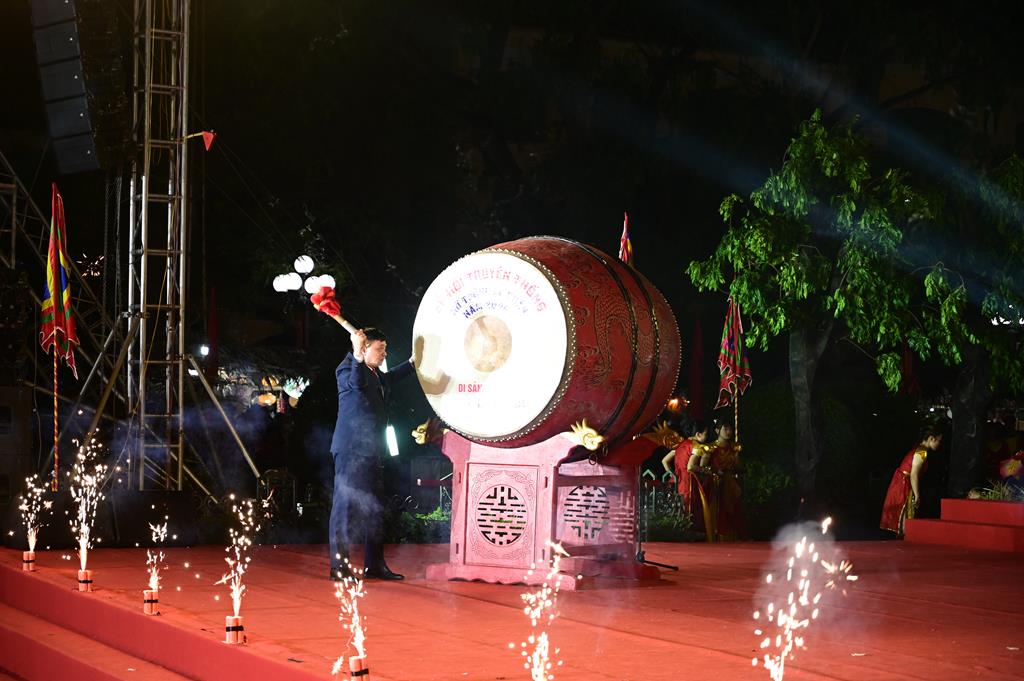 Ông Đặng Đông Anh, Bí Thư Đảng ủy phường Lê Chân đánh trống khai hội