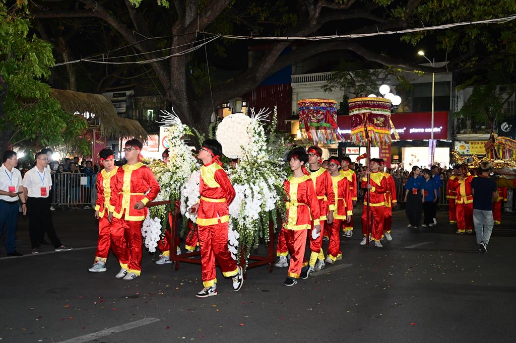 Kiệu Nữ tướng Lê Chân được Phật giáo phường Lê Chân trang trí rất công phu