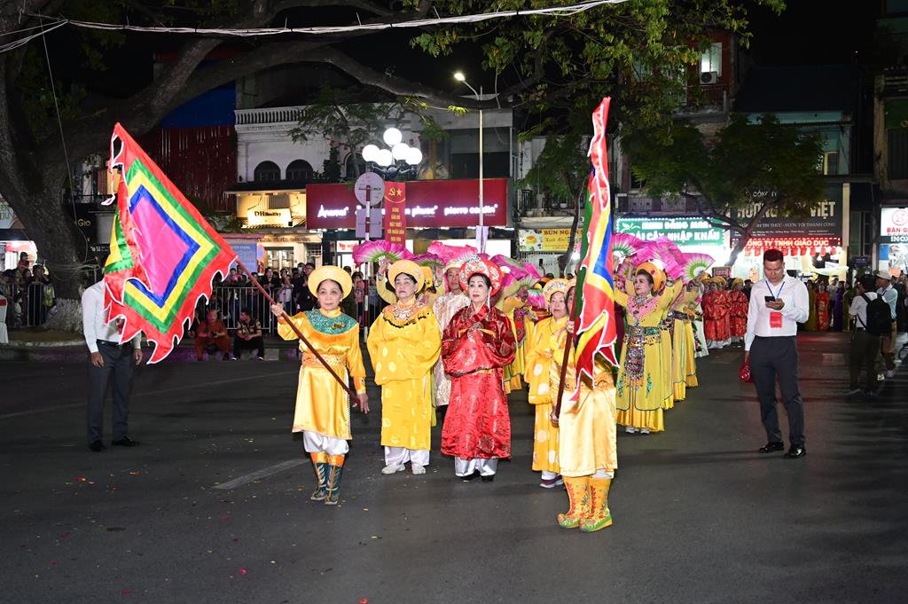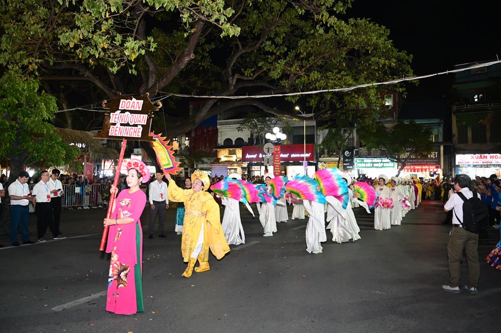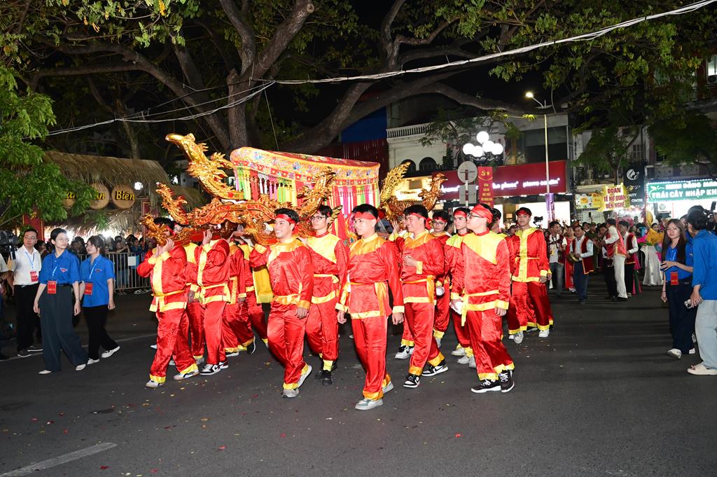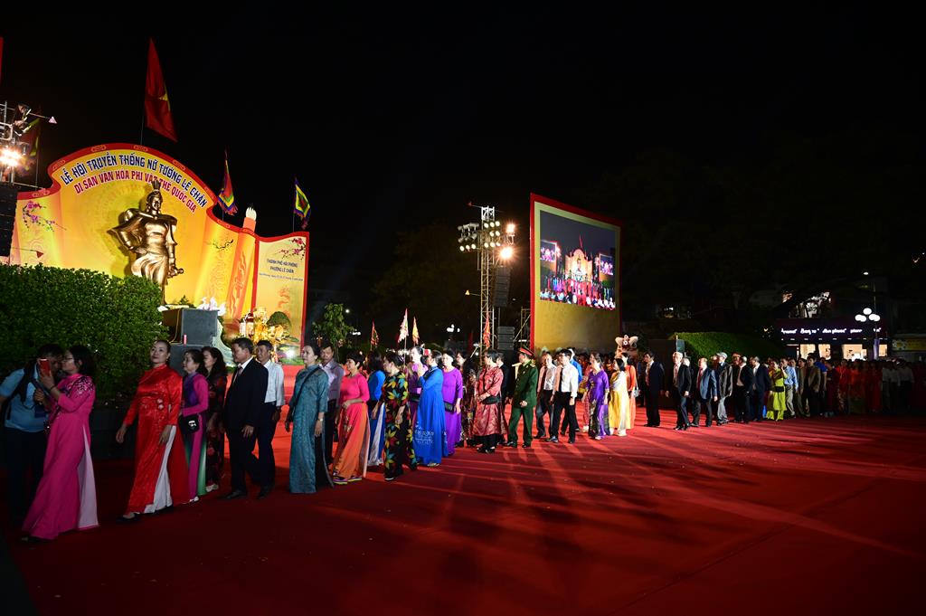 Trước khi diễn ra buổi lễ khai mạc lễ hội, đã diễn ra lễ rước truyền thống, rước Thánh tượng  Nữ tướng Lê Chân với sự tham gia của chư tôn đức Tăng Ni, Phật tử các chùa trên địa bàn phường Lê Chân. Đoàn rước Phật giáo phường Lê Chân xuất phát từ chùa Vẻn (An Biên cổ tự) qua một số tuyến phố chính rồi tiến vào trung tâm lễ đài quảng trường tượng đài Nữ tướng Lê Chân. Đi đầu là cờ Tổ Quốc và cờ Phật giáo, tiếp theo là đoàn chiêng, trống, bát âm, chư tôn đức Tăng Ni, kiệu tôn tượng Thánh bà Lê Chân, theo sau là đoàn Phật tử cầm cờ hoa, nến và các phẩm vật dâng lên Thánh bà nhân kỷ niệm ngày sinh của Bà 08/02 âm lịch. Đặc biệt, tượng Thánh bà Nữ tướng Lê Chân năm nay do Phật giáo phường Lê Chân mới tôn tạo được Phật tử, nhân dân thành phố khen ngợi và đánh giá cao, tôn tượng rất có thần, cân đối, uy linh, với khuôn mặt thánh thiện, thanh thoát đúng với chân dung của người phụ nữ Việt Nam, người con gái Đất Cảng “Kiên trung, bất khuất” một thời oanh liệt.