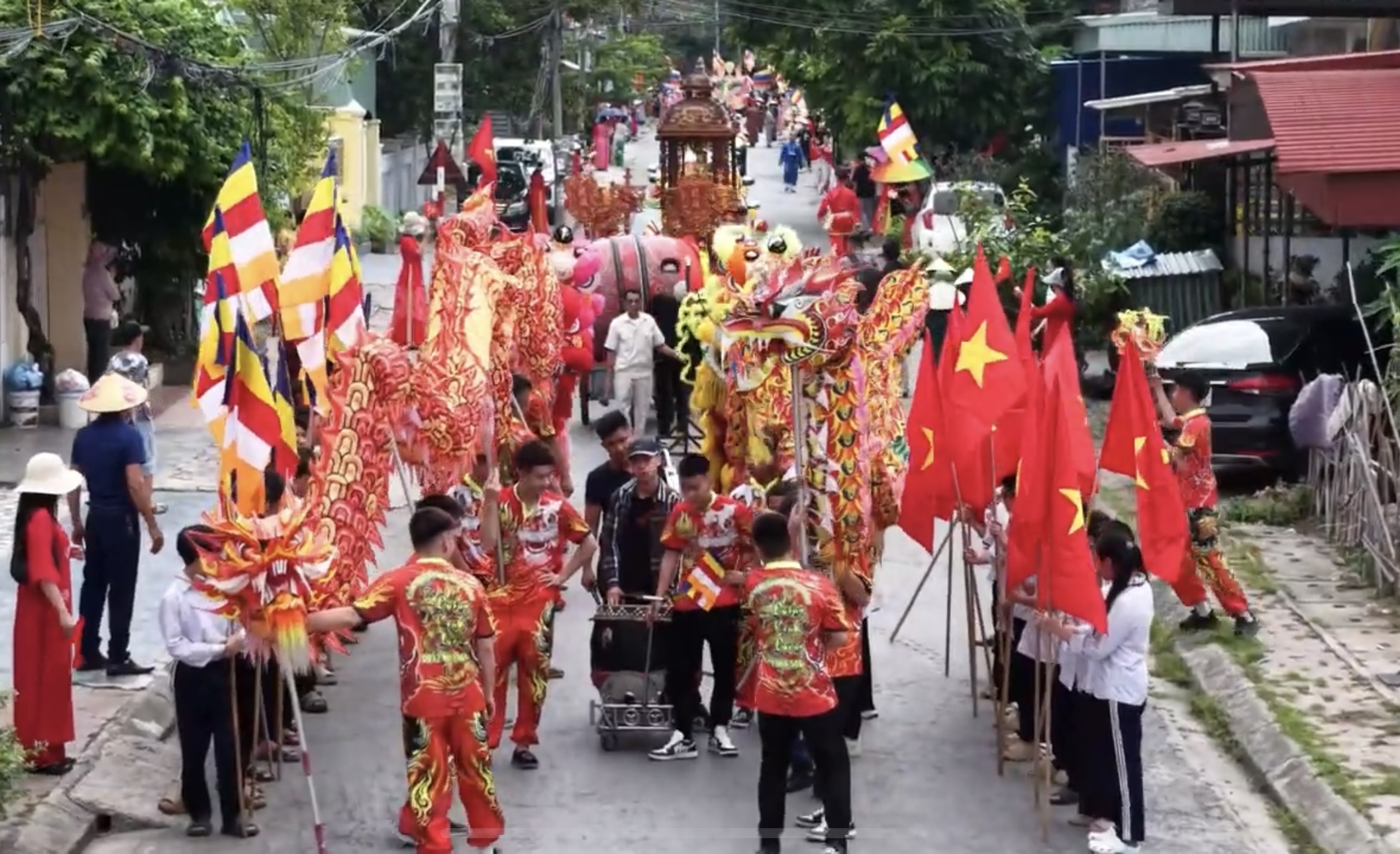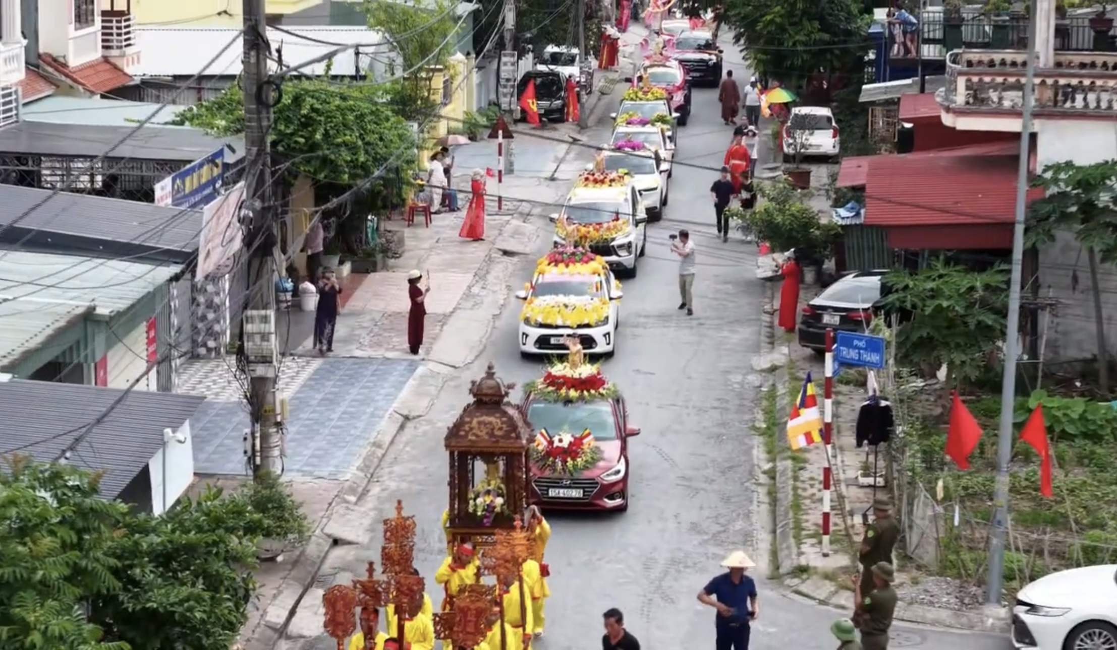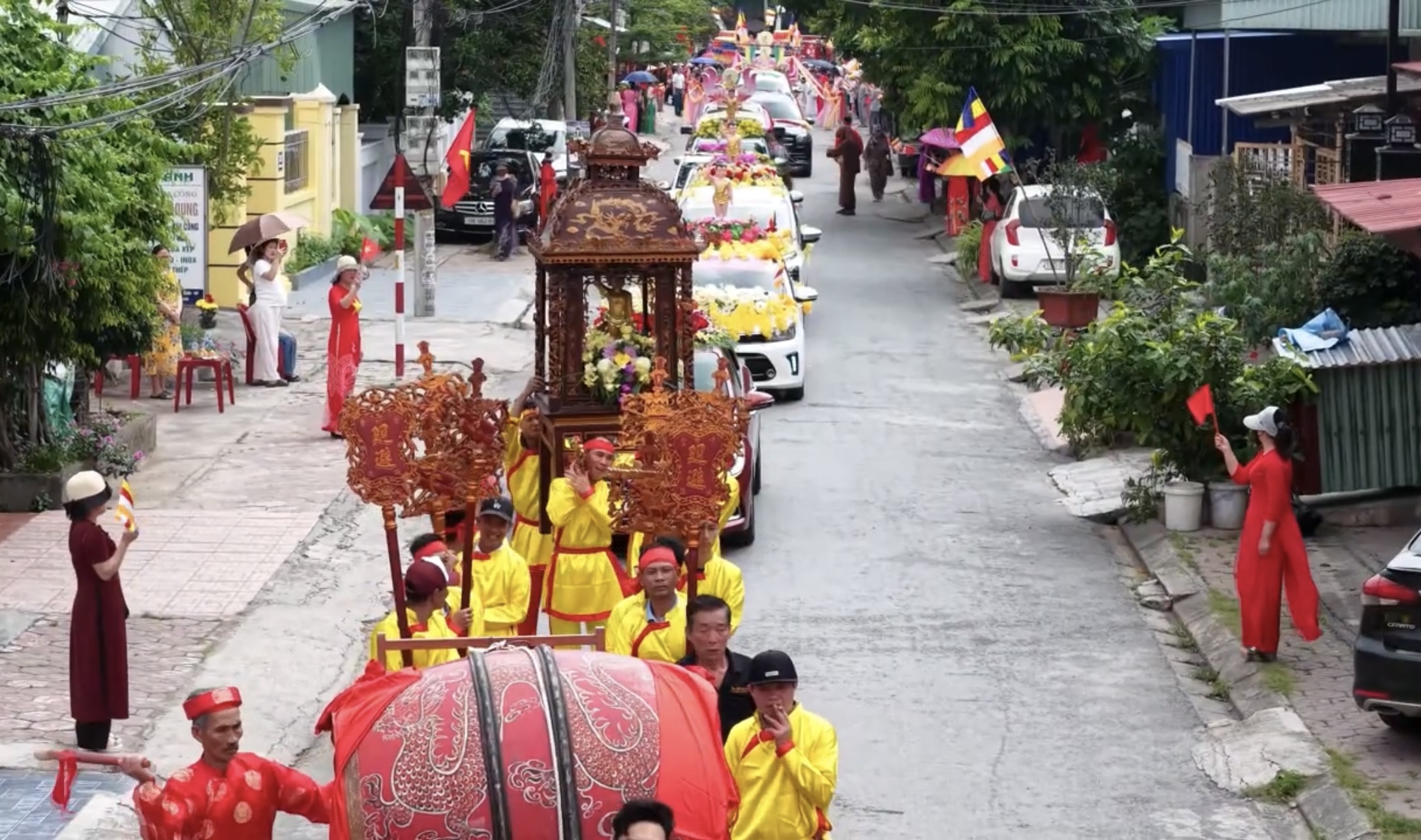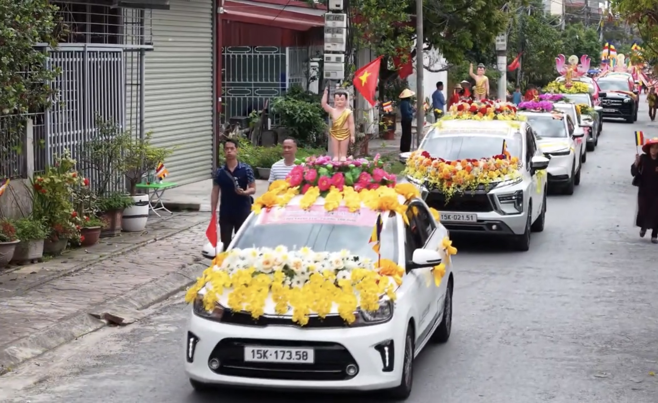 Buổi chiều đã diễn ra lễ rước Phật bằng kiệu đi qua 6 phường trên địa bàn quận Dương Kinh, cùng với đó là hơn 20 xe hoa trang trí đèn hoa rực rỡ, bên trên nóc xe là tôn tượng Đức Phật sơ sinh với tiếng niệm danh hiệu Đức Bản Sư Thích Ca Mâu Ni hùng tráng, vang vọng khắp khu dân cư để toàn thể nhân dân, Phật tử được hưởng thêm phần lợi lạc.