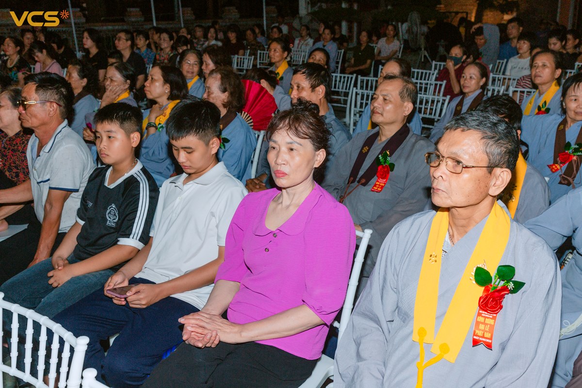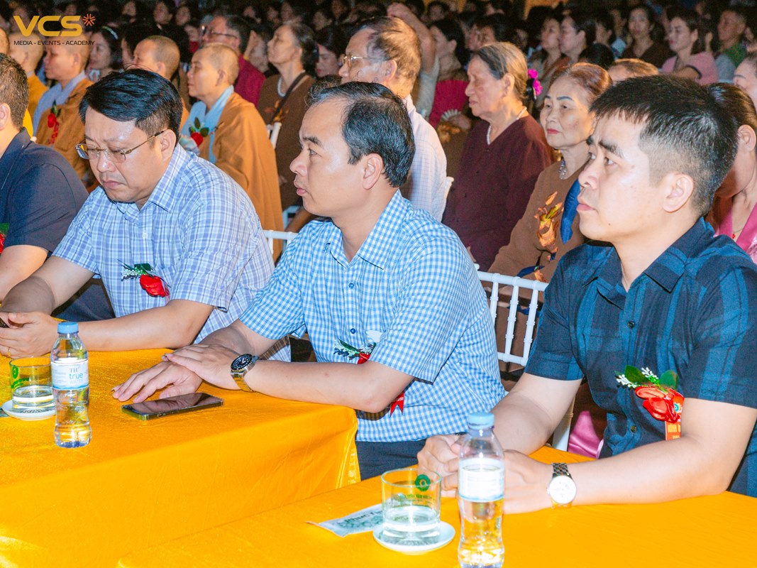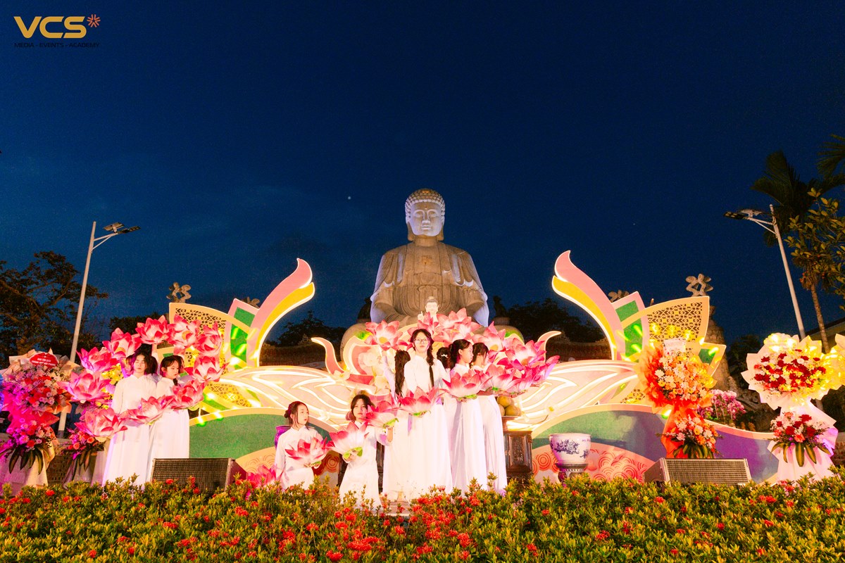 Buổi tối cùng ngày chính thức diễn ra Đại lễ kính mừng Phật đản PL.2569 – DL.2025. Mở đầu buổi lễ là các tiết mục văn nghệ do Phật tử các chùa trên địa bàn quận, các em thanh thiếu niên Phật tử chùa Khánh Vân phát tâm cúng dàng lên đức từ phụ Bản Sư Thích Ca Mâu Ni, với các khúc ca ngợi Đấng Thế Tôn nhân kỷ niệm 2.649 năm ngày đản sinh.