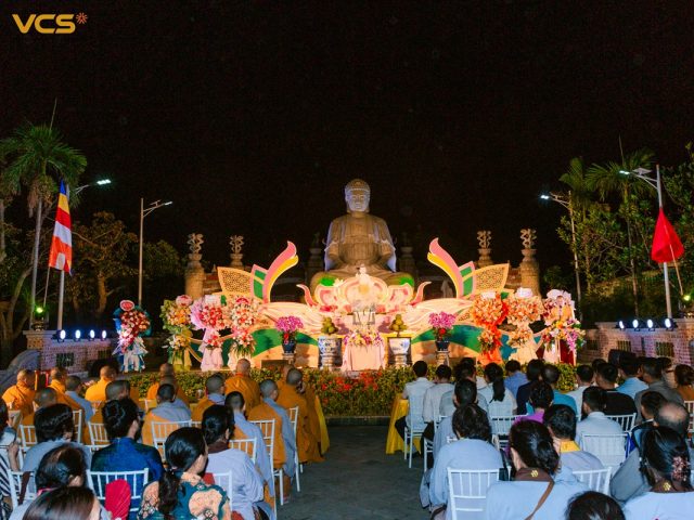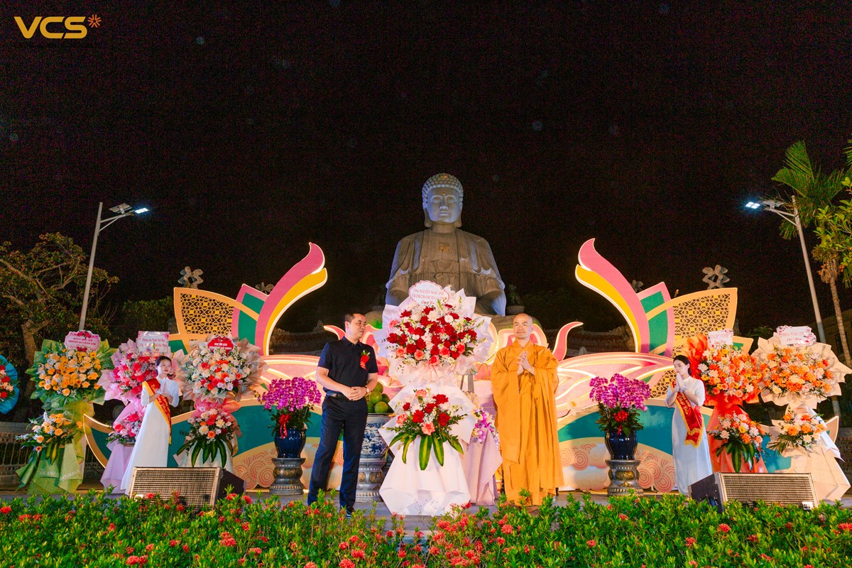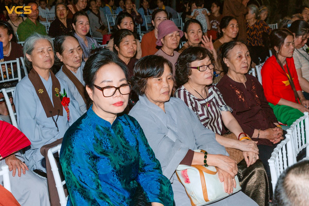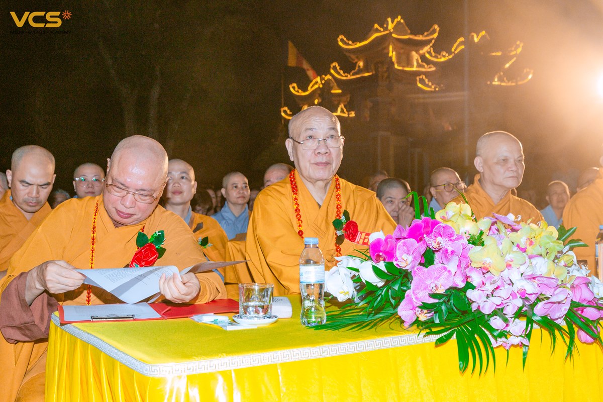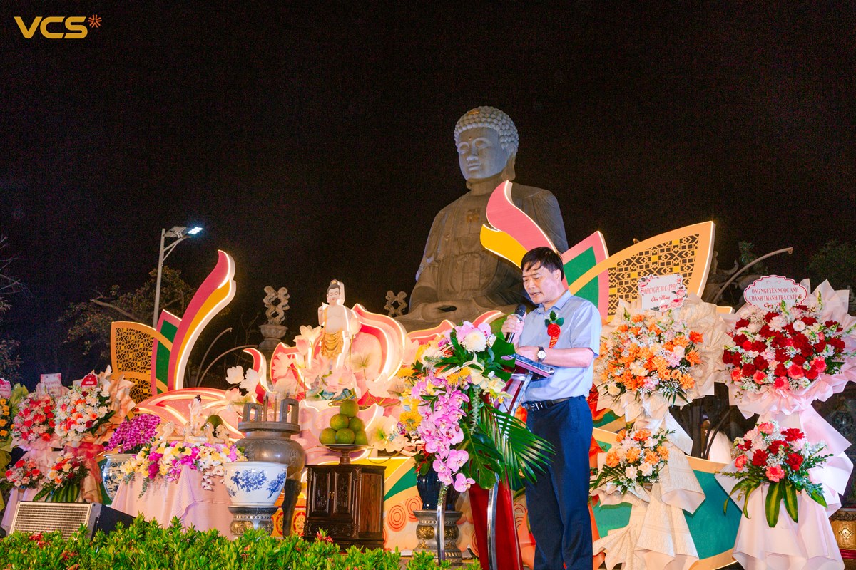 Tiếp đó, Đại đức Thích Quảng Nghĩa đã lên tuyên đọc Diễn văn Phật đản PL.2569 – DL.2025 của Đức Trưởng lão Hòa thượng Thích Thiện Nhơn – Chủ tịch HĐTS TƯ GHPGVN gửi chư Tôn đức Tăng Ni và Phật tử nhân dịp đại lễ Phật đản năm nay. Trong bài diễn văn, trưởng lão Hòa thượng Chủ tịch HĐTS kêu gọi cộng đồng Phật giáo toàn cầu hãy cùng nhau tinh tấn hành trì chánh pháp, nuôi dưỡng bình an nội tâm, lan tỏa năng lượng từ bi và trí tuệ, đóng góp thiết thực cho hòa bình và hạnh phúc chung của toàn nhân loại. Hòa thượng khẳng định Việt Nam là quốc gia có truyền thống Phật giáo từ lâu đời, gắn bó mật thiết với tiến trình xây dựng, phát triển đất nước, Việt Nam vinh dự được tổ chức Đại lễ Vesak 2025 trong không khí cả nước tưng bừng kỷ niệm đại thắng lịch sử mùa xuân năm 1975 thống nhất đất nước. Nhìn lại chặng đường lịch sử đó, Phật giáo Việt Nam tự hào đã góp phần vào chiến thắng hào hùng của dân tộc, góp phần làm nên bản lĩnh và trí tuệ Việt Nam với ngọn lửa trái tim bất diệt của Bồ tát Thích Quảng Đức và biết bao các thế hệ Tăng Ni, Phật tử đã dấn thân vì sự nghiệp giải phóng dân tộc. Chặng đường lịch sử hào hùng 50 năm qua cho chúng ta thấy rõ con đường phát triển mà dân tộc Việt Nam đang đi là con đường của sự đoàn kết, của sự bao dung và của một xã hội mà mỗi người đều được sống trong hòa bình, hạnh phúc và an lạc.