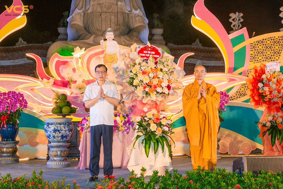 Tại buổi lễ, chư Tôn đức Ban Trị sự GHPGVN quận Dương Kinh đã đón nhận những lẵng hoa tươi thắm chúc mừng của Thường trực BTS GHPGVN TP.Hải Phòng, đại diện Ban Trị sự các quận huyện trong thành phố, Ban Tôn giáo Sở Nội vụ, phòng An ninh nội địa Công an thành phố, đại diện lãnh đạo Đảng ủy, HĐND, UBND, UB MTTQVN quận Dương Kinh, đại diện các phường, các sở ban ngành trên địa bàn quận và đại diện Phật tử các chùa trong quận.
