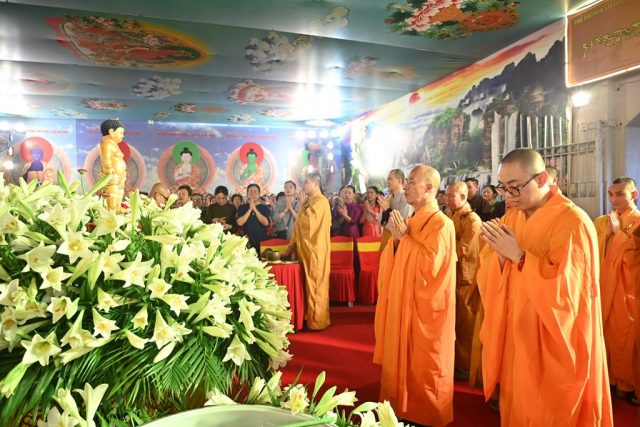 Chư tôn đức cử hành nghi lễ dâng hương, bạch Phật và nghi lễ tắm Phật