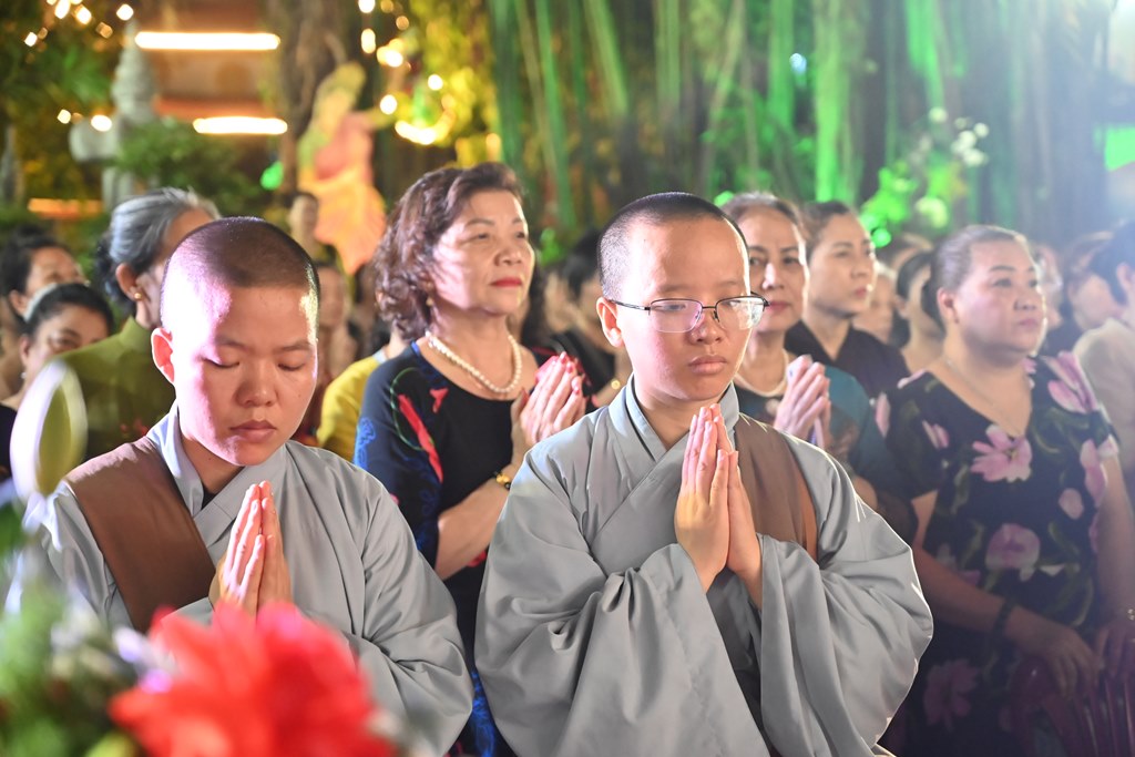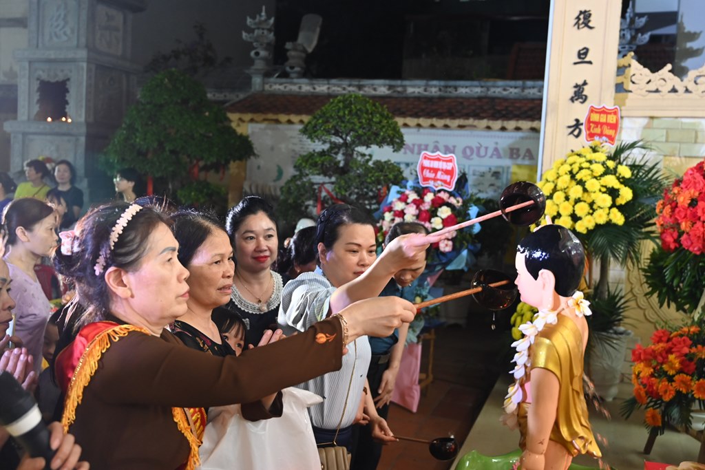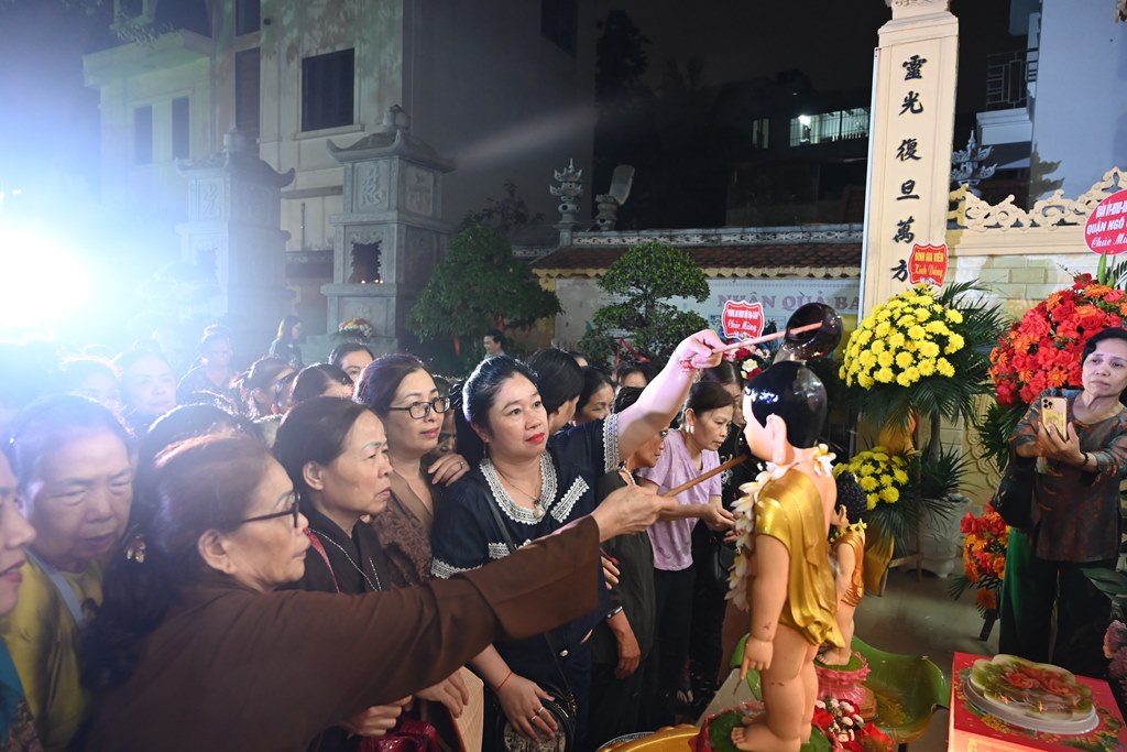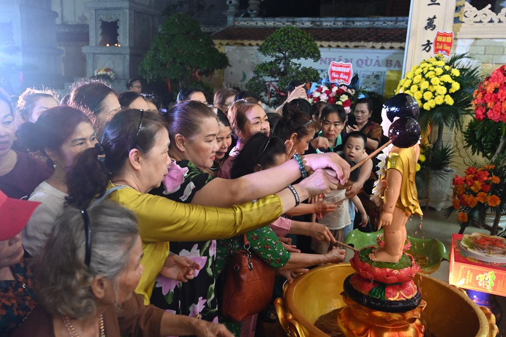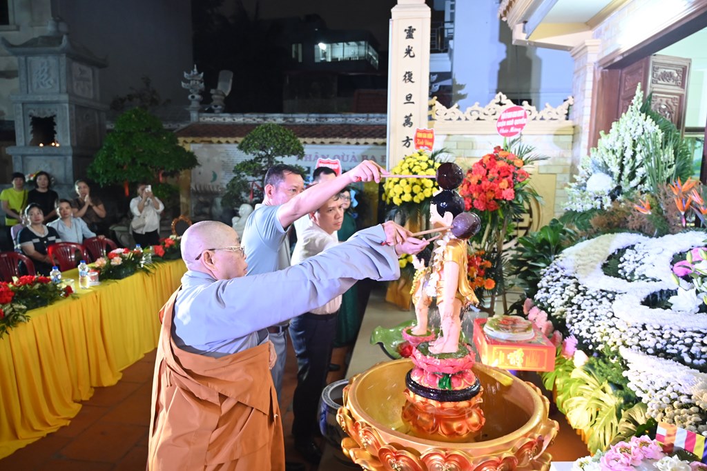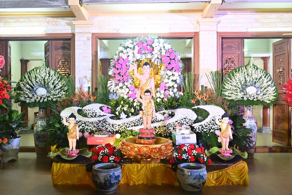 Trước khi kết thúc buổi lễ, chư tôn đức Tăng Ni và toàn thể đạo tràng đã trang nghiêm, thành kính cử hành nghi lễ dâng hương, bạch Phật, thả hoa đăng cầu nguyện thế giới hòa bình, chúng sinh an lạc, dâng kệ tắm Phật và cử hành nghi lễ “Mộc dục” theo nghi thức truyền thống của Phật giáo trong không khí hoan hỷ đón mừng Đức Phật ra đời.