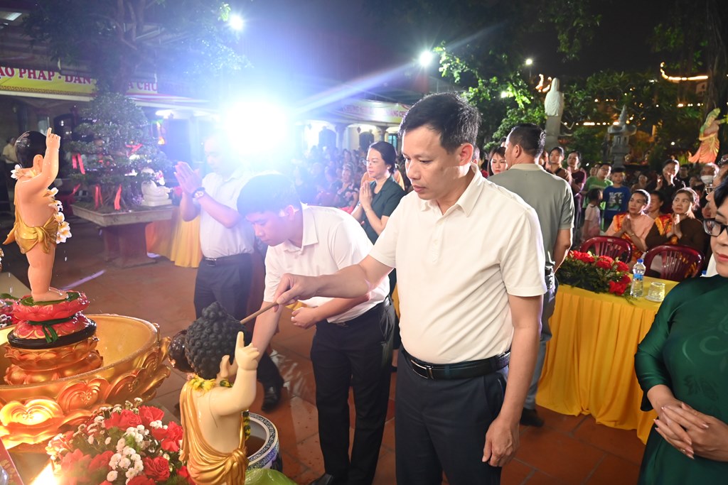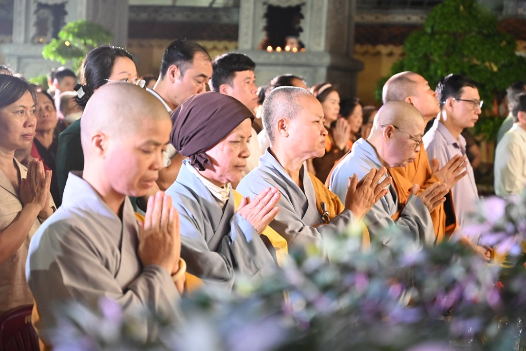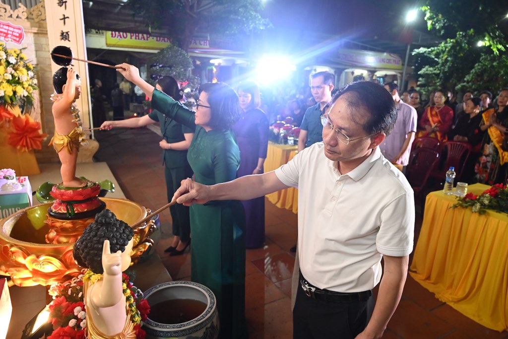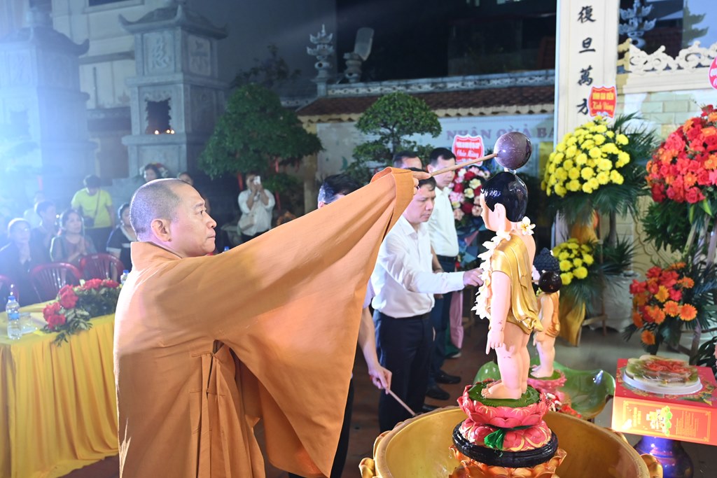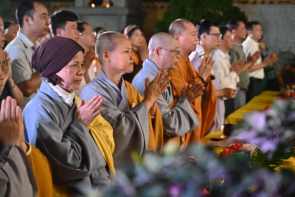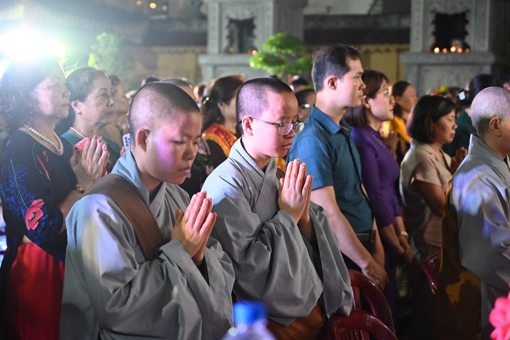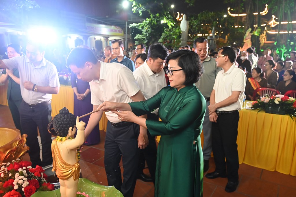 Trước khi kết thúc buổi lễ, chư tôn đức Tăng Ni và toàn thể đạo tràng đã trang nghiêm, thành kính cử hành nghi lễ dâng hương, bạch Phật, thả hoa đăng cầu nguyện thế giới hòa bình, chúng sinh an lạc, dâng kệ tắm Phật và cử hành nghi lễ “Mộc dục” theo nghi thức truyền thống của Phật giáo trong không khí hoan hỷ đón mừng Đức Phật ra đời.