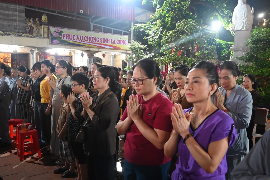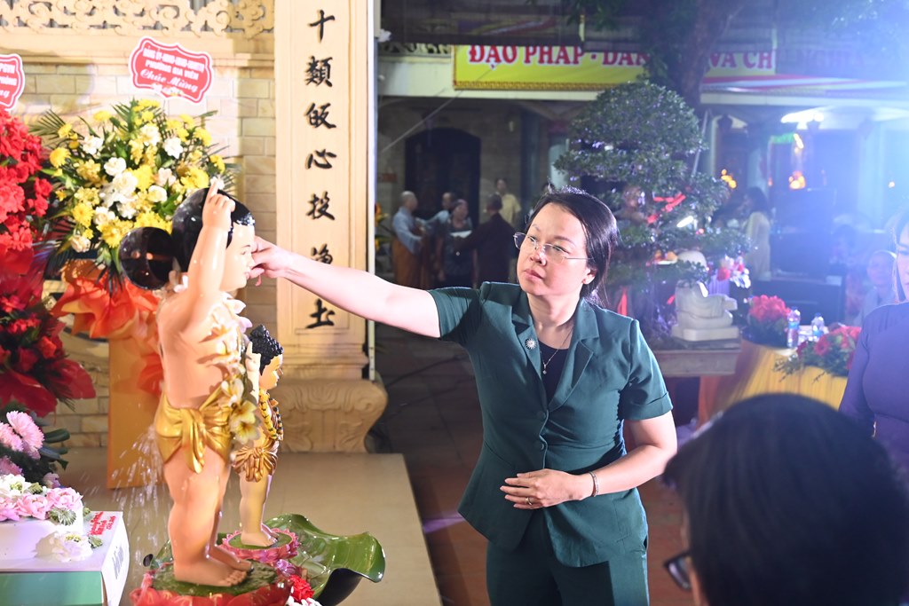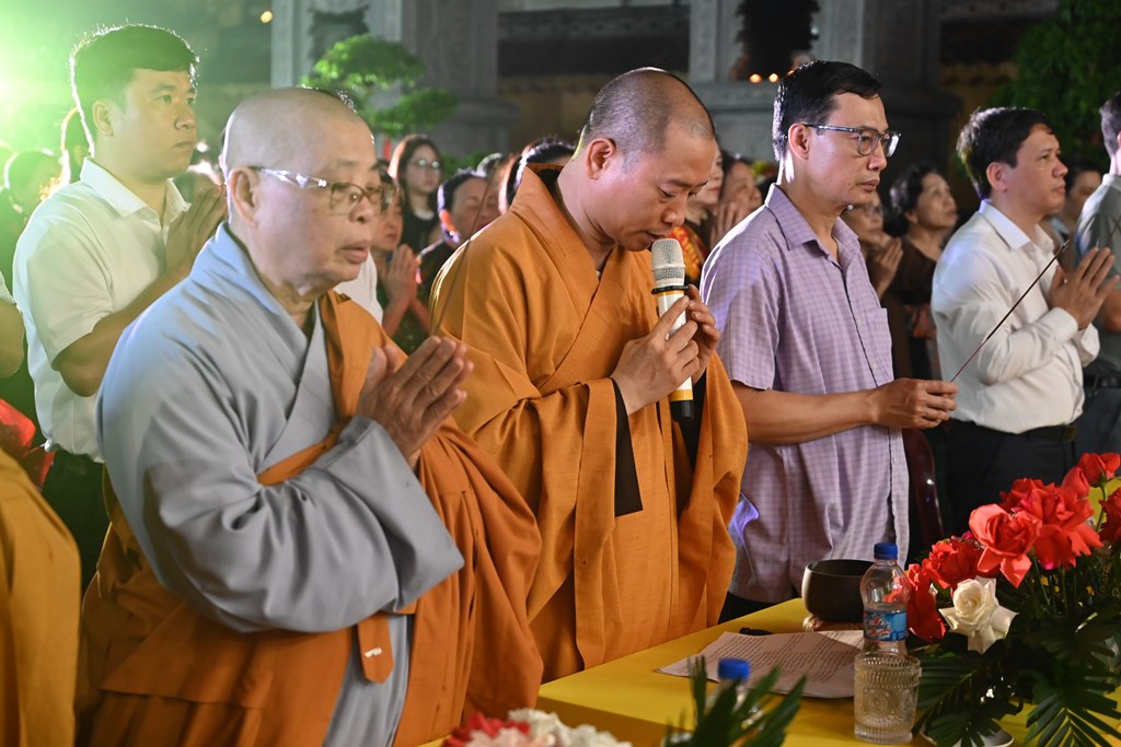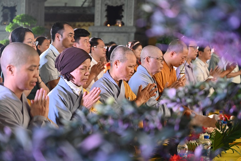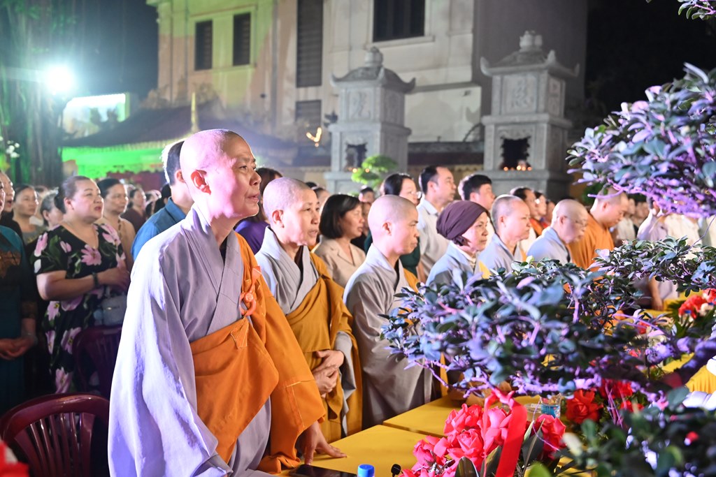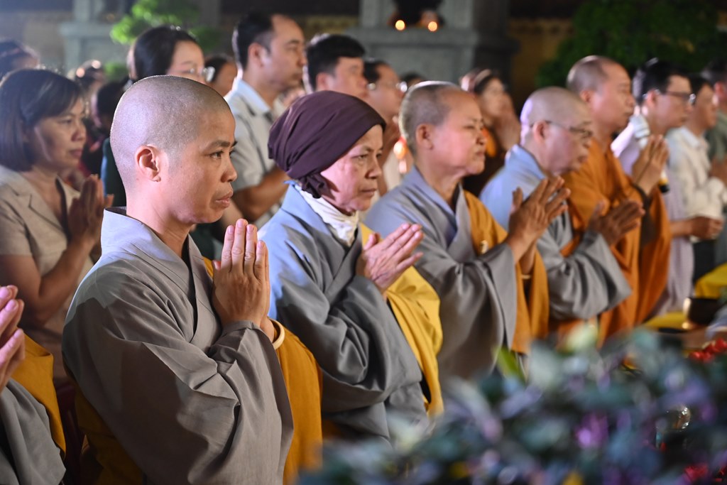 Trước khi kết thúc buổi lễ, chư tôn đức Tăng Ni và toàn thể đạo tràng đã trang nghiêm, thành kính cử hành nghi lễ dâng hương, bạch Phật, thả hoa đăng cầu nguyện thế giới hòa bình, chúng sinh an lạc, dâng kệ tắm Phật và cử hành nghi lễ “Mộc dục” theo nghi thức truyền thống của Phật giáo trong không khí hoan hỷ đón mừng Đức Phật ra đời.
