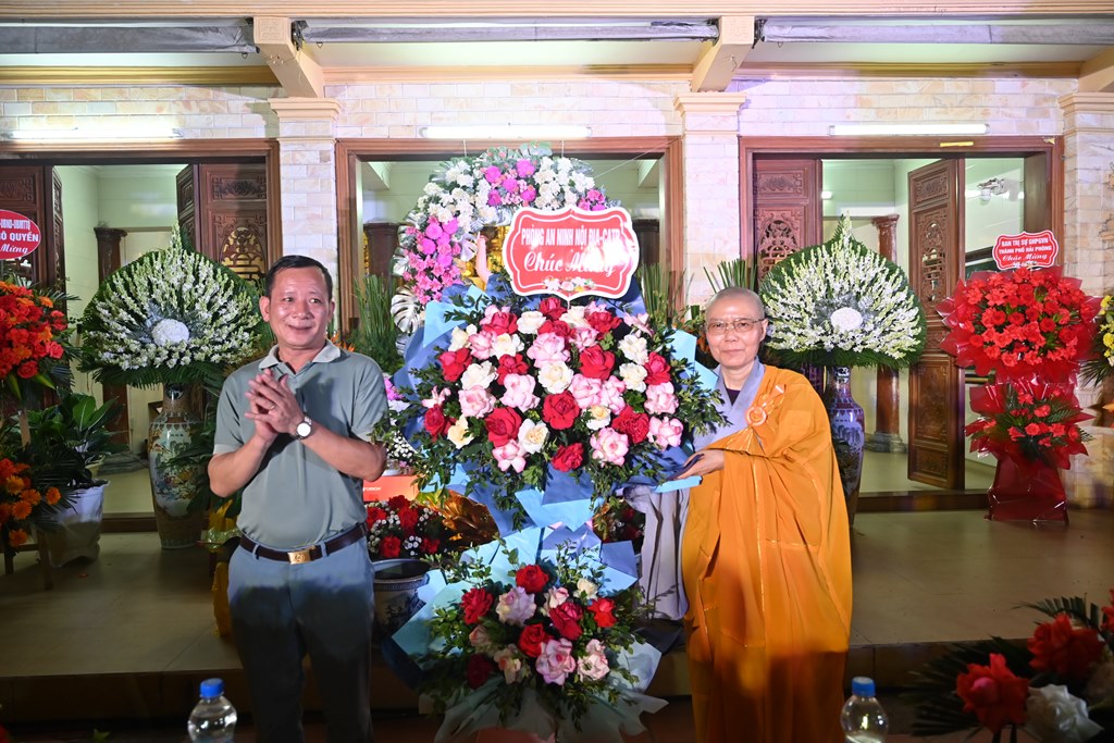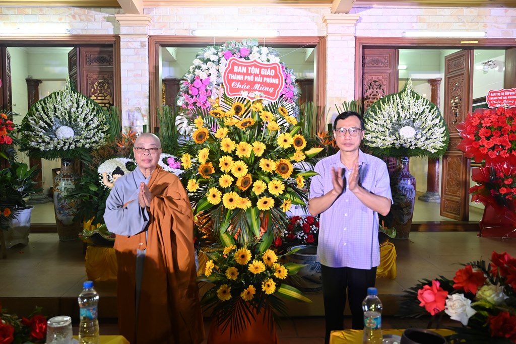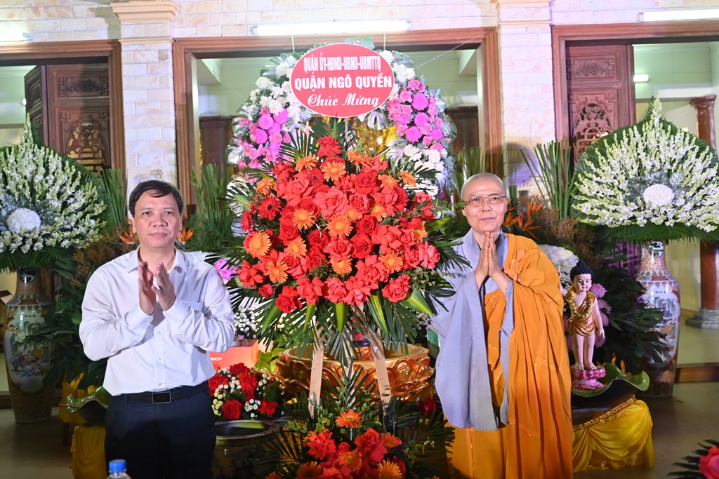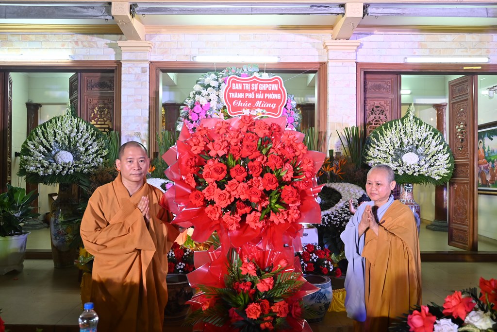 Trong không khí hoan hỷ của buổi lễ, Ban trị sự GHPGVN quận Ngô Quyền đã đón nhận những lẵng hoa tươi thắm chúc mừng của thường trực Ban trị sự GHPGVN thành phố Hải Phòng, đại diện Ban trị sự các quận huyện trong thành phố; Ban Tôn giáo Sở Nội vụ, Phòng An ninh Nội địa Công an thành phố; Đại diện cho Đảng ủy – HĐND – UBND – UB MTTQVN quận Ngô Quyền, phường Gia Viên, các sở ban ngành trong quận.
