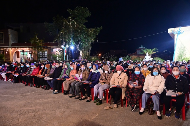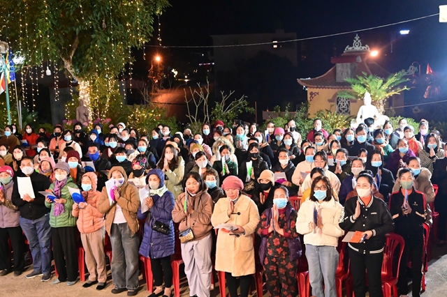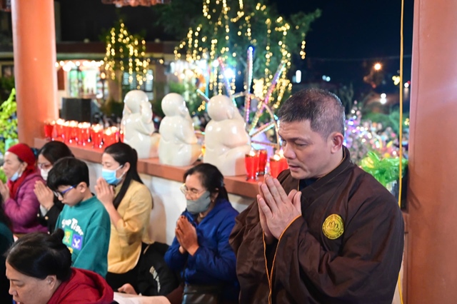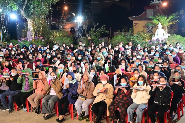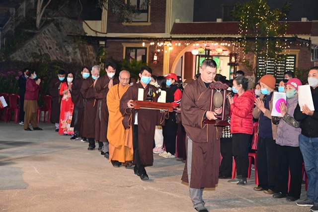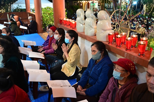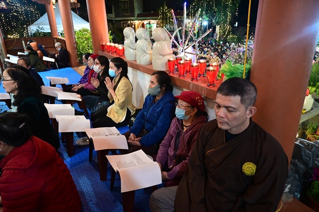 Tiếp đó, toàn thể đại chúng đã trang nghiêm thành kính tụng kinh “Bát Chánh Đạo” và dâng sớ cầu an đầu năm, cùng với ước nguyện một năm mới bình an, hạnh phúc; đồng cầu nguyện cho Thế giới hòa bình, chúng sinh an lạc, Phật pháp trường tồn. Toàn thể đại chúng tham dự buổi lễ đều rất trang nghiêm, thực hiện theo đúng quy định của Ban tổ chức, không ai nói chuyện hay làm việc riêng trong khi hành lễ, dốc một lòng cầu nguyện để buổi lễ được thập phần viên mãn. Buổi lễ đã khép lại trong không khí hoan hỷ, ấm tình đạo vị nhân dịp đầu xuân mới.