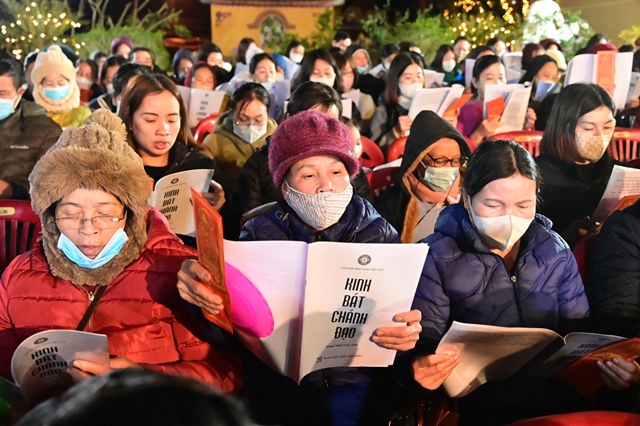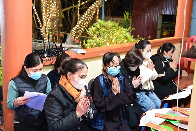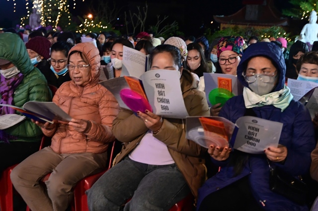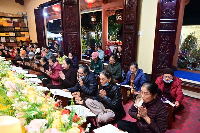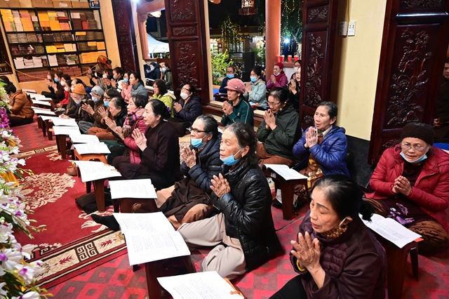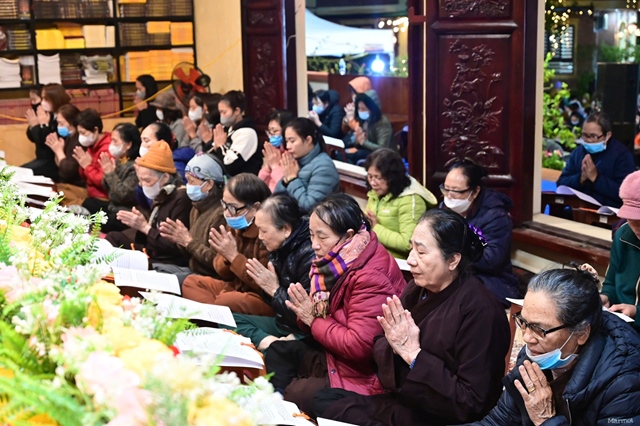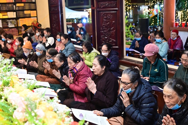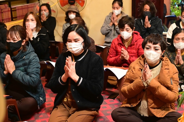 Phật tử tụng kinh cầu nguyện nhân dịp đầu xuân mới