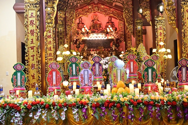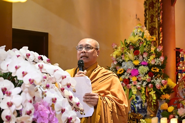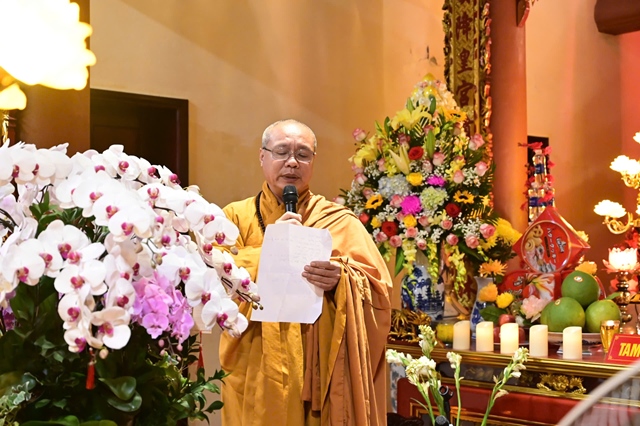 Quang lâm chứng minh và chủ sám buổi lễ có Thượng tọa Thích Tục Khang – Ủy viên Hội đồng trị sự TƯ GHPGVN, phó trưởng ban trị sự, trưởng ban Ban Phật giáo Quốc tế GHPGVN thành phố Hải Phòng, trưởng Ban trị sự GHPGVN huyện Cát Hải, trưởng BTC đại lễ.