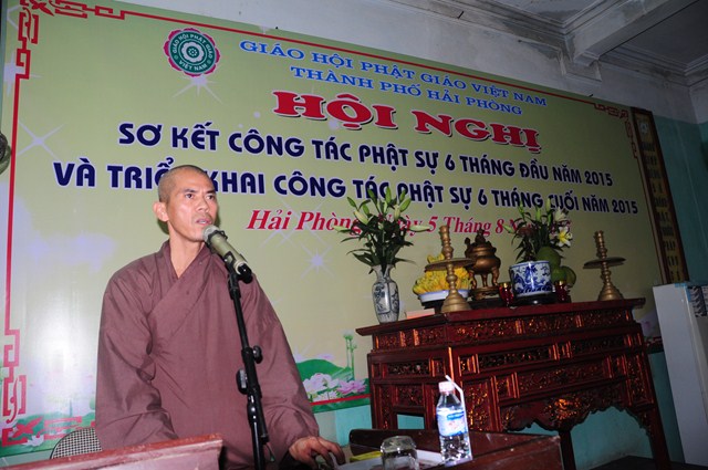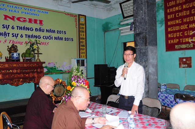 Đại diện cho Sở Nội Vụ, Ban tôn giáo thành phố Hải Phòng, ông Nguyễn Văn Nhã đã đánh giá cao sự thành công các hoạt động Phật sự của Ban trị sự GHPGVN Tp. Hải Phòng trong 6 tháng đầu năm . Trong thời gian tới, Sở nội vụ, Ban tôn giáo thành phố sẽ tiếp tục phối hợp với GHPGVN Tp. Hải Phòng để giải quyết 1 số vấn đề như vấn đề về Tăng sự, vấn đề về xây dựng trường Trung cấp Phật học Hải Phòng và xây dựng trụ sở Ban trị sự GHPGVN Tp. Hải Phòng, vấn đề về việc tổ chức các hoạt động tôn giáo ngoài cơ sở thờ tự và không xin phép đang phổ biến ở rất nhiều địa phương cũng như ở thành phố Hải Phòng… Bên cạnh đó, ông cũng đánh giá cao công tác từ thiện xã hội của GHPGVN thành phố Hải Phòng trong thời gian qua thông qua việc ủng hộ vào các quỹ đền ơn đáp nghĩa, quỹ ủng hộ nạn nhân chất độc màu da cam, người già không nơi nương tựa, vv… , góp phần vào chương trình xóa đói, giảm nghèo của thành phố.