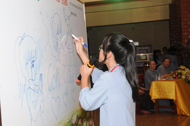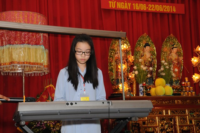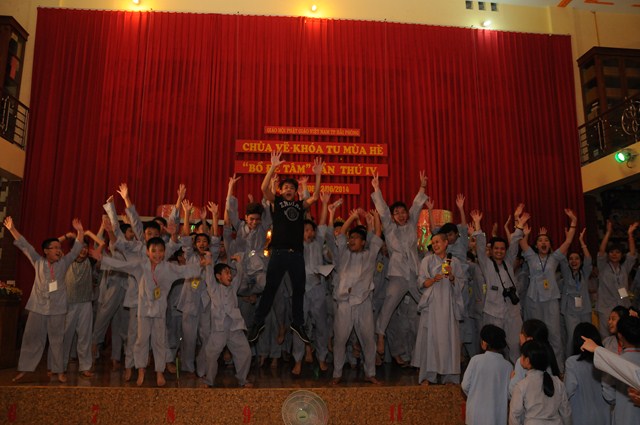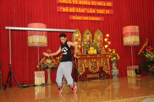 Buổi tối nay, các em khóa sinh đã được thể hiện hết tài năng của mình trong chương trình ” Tìm kiếm tài năng chùa Vẽ 2014″, các em đã trổ tài ca hát, nhảy hip hop, đóng kịch, kể chuyện, nhảy dân vũ, đánh đàn organ, thổi sáo…Mỗi người thể hiện một tài năng khác nhau làm cho chương trình thêm sinh động, đa dạng và phong phú. Ở bên dưới sân khấu, các bạn khóa sinh cổ vũ rất nhiệt tình mỗi khi chương trình của Chúng các bạn được thể hiện. Cuối cùng Ban tổ chức đã tìm ra được khóa sinh có tài năng nhất và sẽ được trao giải vào buổi tồng kết khóa tu học vào chủ nhật tuần này.