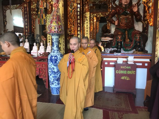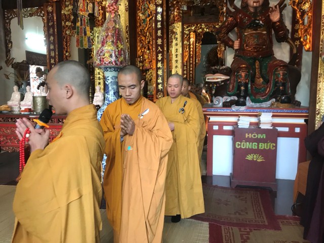 Trước khi kết thúc buổi lễ, chư tôn đức Tăng chùa Phổ Chiếu, cùng tăng ni sinh khóa 8 trường Trung cao đẳng Phật học Hải Phòng và đông đảo quý Phật tử đã cử hành nghi lễ niêm hương, bạch Phật, tụng kinh A Di Đà, xưng tán danh hiệu Đức Phật A Di Đà, nhiễu Phật, niệm Phật để tưởng nhớ đến công hạnh , tri ân công đức của Đức Phật A Di Đà và cầu nguyện cho thế giới hòa bình, chúng sinh an lạc, âm siêu, dương khánh. Đồng thời, phát nguyện tinh tấn tu học để khi xả báo thân này được vãng sinh về thế giới Tây Phương Cực Lạc của đức từ phụ A Di Đà.