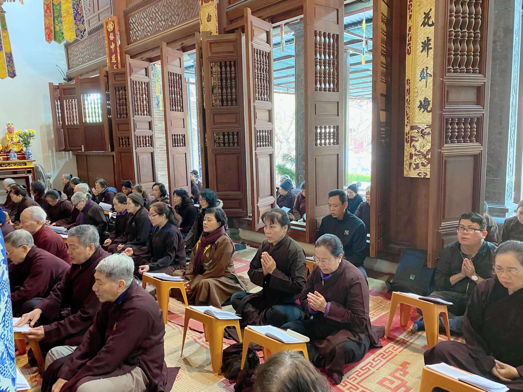 Trước khi kết thúc buổi lễ, chư tôn đức Tăng chùa Phổ Chiếu, cùng tăng ni sinh khóa 8 trường Trung cao đẳng Phật học Hải Phòng và đông đảo quý Phật tử đã cử hành nghi lễ niêm hương, bạch Phật, tụng kinh A Di Đà, xưng tán hồng danh Đức Phật A Di Đà, 48 lời Đại nguyện của Ngài, nhiễu Phật, niệm Phật tưởng nhớ công hạnh của Ngài, tri ân công đức của Đức Phật A Di Đà và cầu nguyện cho thế giới hòa bình, chúng sinh an lạc, tật bệnh tiêu trừ. Đồng thời, phát nguyện tinh tấn tu học để khi hết báo thân này được vãng sinh về thế giới Tây Phương Cực Lạc của đức Từ phụ A Di Đà.