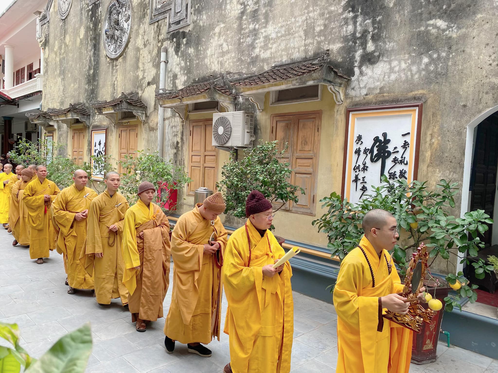 Sáng nay, ngày 17/11 năm Canh Tý ( nhằm ngày 30/12/2020) nhân ngày Khánh đản Đức Phật A Di Đà, Chư tôn đức Tăng Ni sinh ( Khóa 8), trường Trung cao đẳng Phật học Tp. Hải Phòng đã vân tập về Tổ đình Phổ Chiếu, phường Dư Hàng Kênh, quận Lê Chân, thành phố Hải Phòng trang nghiêm thành kính tổ chức buổi lễ kính mừng khánh đản Đức Phật A Di Đà 17/11 âm lịch.