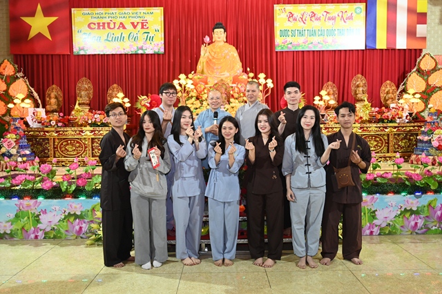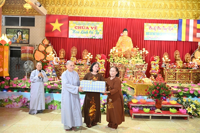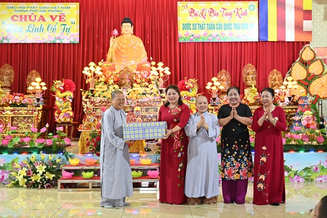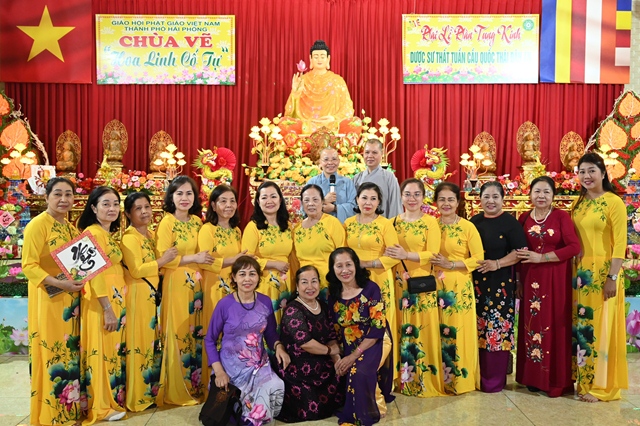 Tiếp đoàn tại Trụ sở Ban trị sự GHPGVN thành phố Hải Phòng có Hòa thượng Thích Quảng Tùng – Phó Chủ tịch HĐTS GHPGVN, trưởng Ban từ thiện – xã hội GHPGVN, trưởng Ban trị sự GHPGVN thành phố Hải Phòng và tại chùa Vẽ có Ni sư Thích Tâm Chính – Ủy viên thường trực Ban Hoằng Pháp, Ban Từ thiện – xã hội GHPGVN, trưởng Ban từ thiện – xã hội GHPGVN thành phố Hải Phòng, nguyên trưởng BTS GHPGVN quận Hải An, trụ trì chùa Vẽ ( Hoa Linh cổ tự).