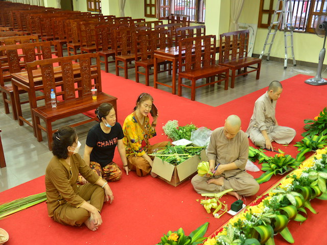 Chư tôn đức và quý Phật tử cắm hoa tại Hội trường