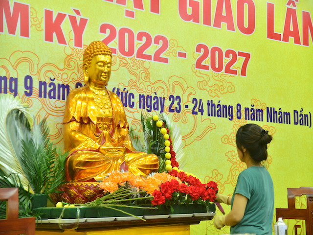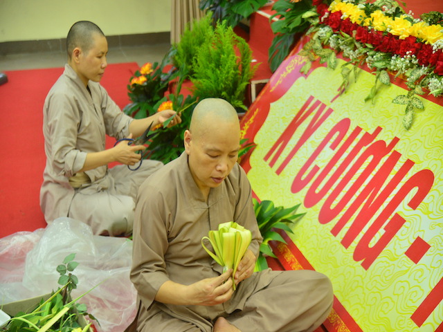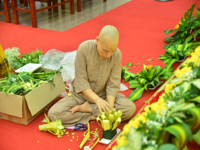 Chư tôn đức và quý Phật tử cắm hoa tại Hội trường