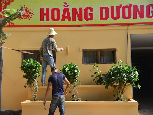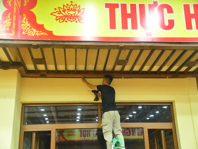 Các Phật tử lau dọn để chuẩn bị cho Đại lễ cắt băng khánh thành trụ sở Ban trị sự