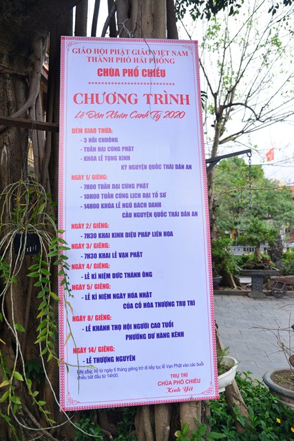 Mỗi mùa xuân về, theo phong tục tập quán của người Việt, hàng triệu Phật tử, du khách thập phương lại đổ về các chùa rất đông, đi lễ đầu năm, cầu nguyện sang năm mới được vạn sự bình an, vô lượng an lạc, vô lượng cát tường. Chính vì lẽ đó, tại các chùa trên địa bàn thành phố Hải Phòng từ nhiều ngày nay đã nô nức, hoan hỷ trang trí chính điện, khuôn viên chùa với cờ hoa rực rỡ, những cây đào, cây quất, cây mai khoe sắc xuân được bài trí trước thiền môn. Bên cạnh đó là những nồi bánh chưng xanh, những mâm ngũ quả dâng cúng Phật nhân dịp đầu xuân. Tất cả đã sẵn sàng đón quý khách thập phương đến với thành phố Cảng du xuân, lễ Phật, chiêm bái chùa cảnh nhân dịp đầu xuân.