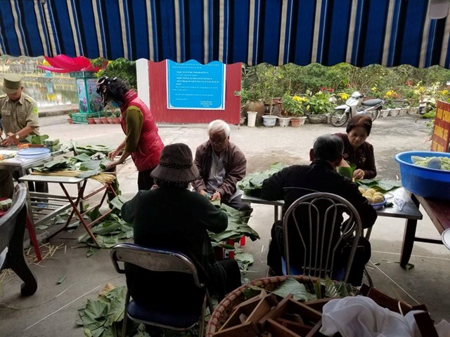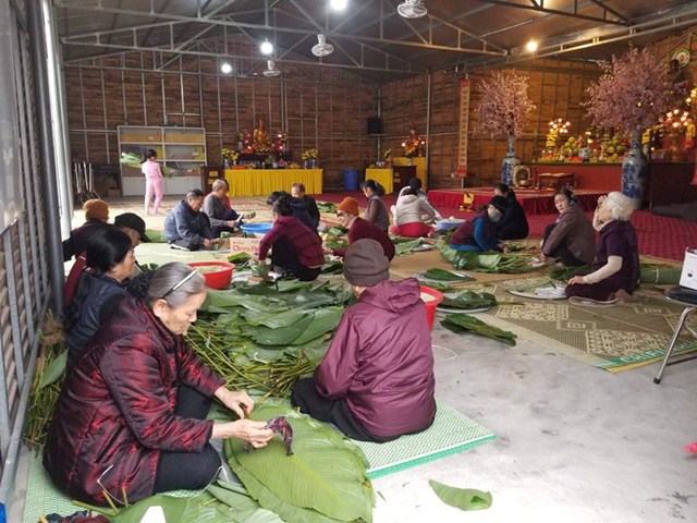 Phật từ chùa Hưng Long gói bánh chưng cúng Phật và từ thiện