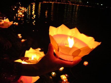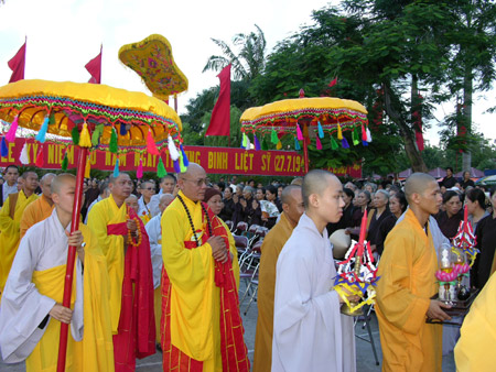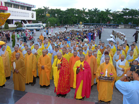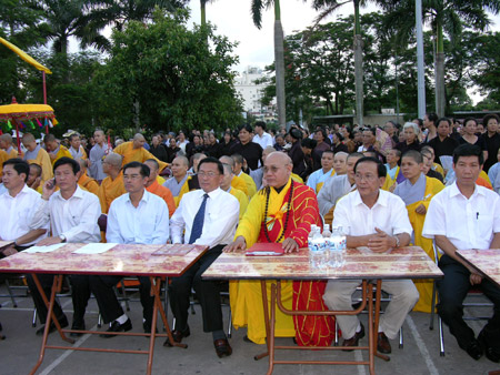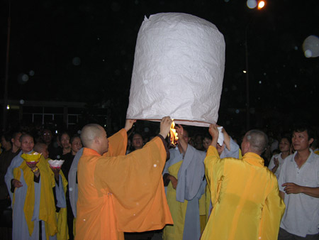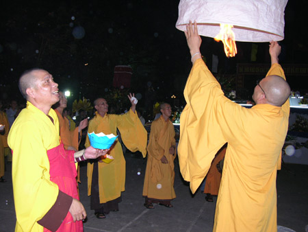 Tại buổi lễ, Tăng ni Phật tử, các vị lãnh đạo chính quyền thả bóng bay, chim hoà bình, phóng đăng 60 lồng đèn trời và cùng làm nghi thức rước 6000 ngọn nến để truyền Đăng thả hoa Đăng tại hồ An Biên.