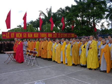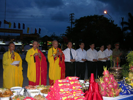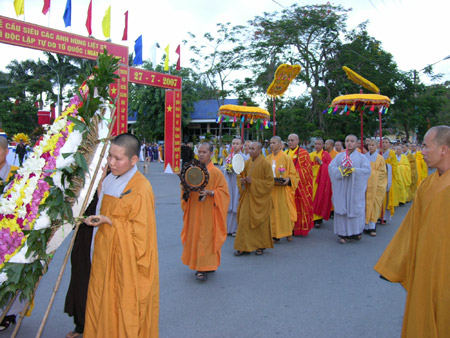 Sau nghi lễ đặt vòng hoa tại nghĩa trang Liệt sĩ và dâng hương tại Đài tưởng niệm, Đại đức Thích Tục Khang tuyên bố lý do và giới thiệu thành phần tham dự, TT. Thích Quảng Tùng đọc lời tưởng niệm các anh hùng liệt sĩ, ông Hoàng Văn Kể thay mặt lãnh đạo thành phố phát biểu cảm tưởng, tiếp theo là khoá lễ tụng kinh niệm Phật, đại chúng cầu siêu.
