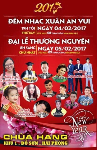 Cũng không ngoài mục đích đó, vào hồi 19 giờ, ngày 08 tháng Giêng năm Đinh Dậu tức ngày 05 tháng 2 năm 2017, Được sự đồng ý của các cấp chính quyền địa phương cũng như được sự cho phép của Giáo hội Phật giáo Việt Nam thành phố Hải Phòng, Chùa Hang ( Cốc tự) tọa lạc tại khu I, phường Vạn Sơn, quận Đồ Sơn, TP. Hải Phòng sẽ tổ chức Đêm nhạc: “Xuân An Vui” kính mừng Đại lễ Thượng Nguyên PL. 2561, DL. 2017. Đêm nhạc được dàn dựng dưới sự chỉ đạo của nhạc sỹ , Phật tử Quý Luân đến từ thành phố Hồ Chí Minh, cùng với sự tham gia của các văn nghệ sỹ đến từ TP.HCM: ca sỹ Quang Hà, ca sỹ Phương Mỹ Chi; Kỷ lục gia, ca Nương trẻ tuổi nhất Việt Nam: Tú Thanh; Đoàn ca múa Hải Phòng: NSƯT Khánh Hòa, ca sỹ Viết Khanh, ca sỹ Thanh Hậu, ca sỹ Hồng Quyền, nhóm The Wings, biên đạo múa Tiến Thuận…