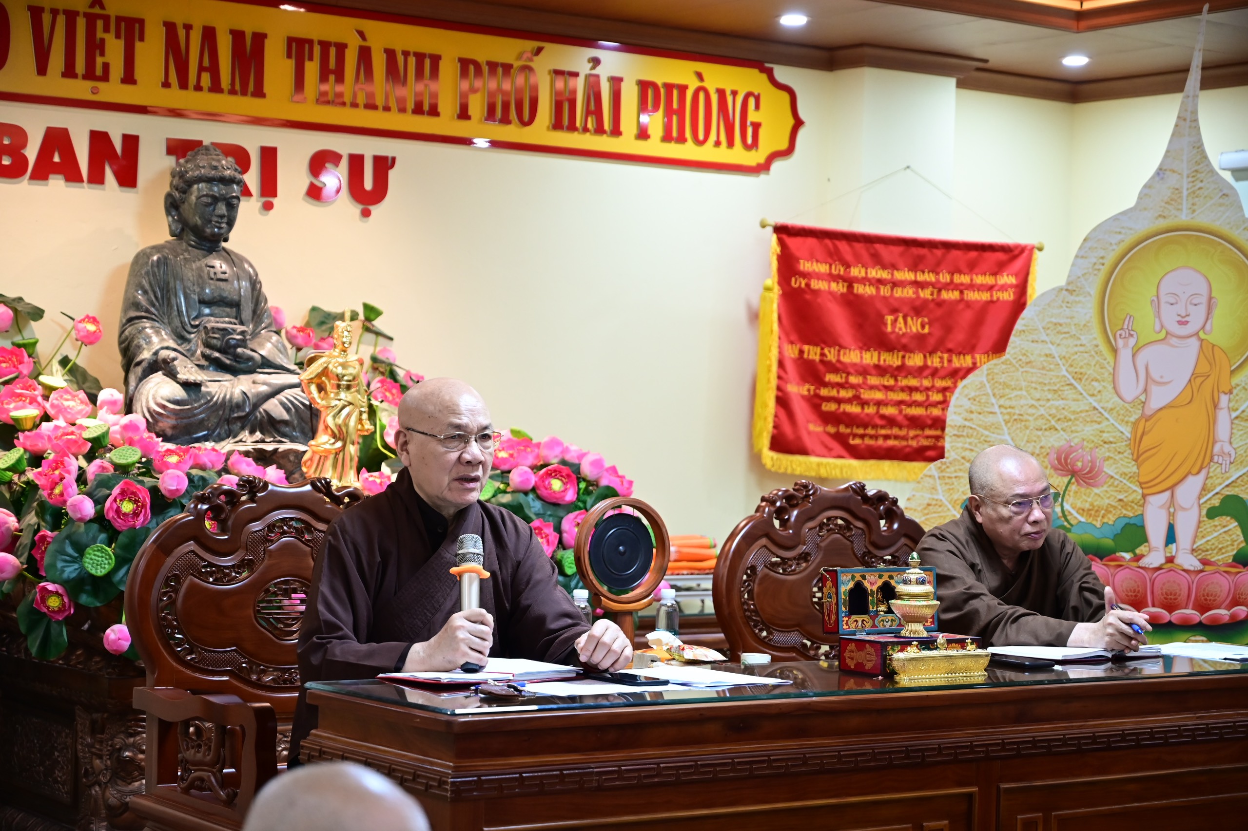 Sáng nay 11/05/2024 ( nhằm ngày 4/4 năm Giáp Thìn), tại chùa Nam Hải ( Trụ sở Ban trị sự GHPGVN thành phố Hải Phòng), chư tôn đức thường trực Ban trị sự GHPGVN thành phố tổ chức phiên họp thường kỳ dưới sự chủ toạ của Hoà Thượng Thích Quảng Tùng – Phó Chủ tịch HĐTS GHPGVN, trưởng Ban trị sự GHPGVN thành phố Hải Phòng.