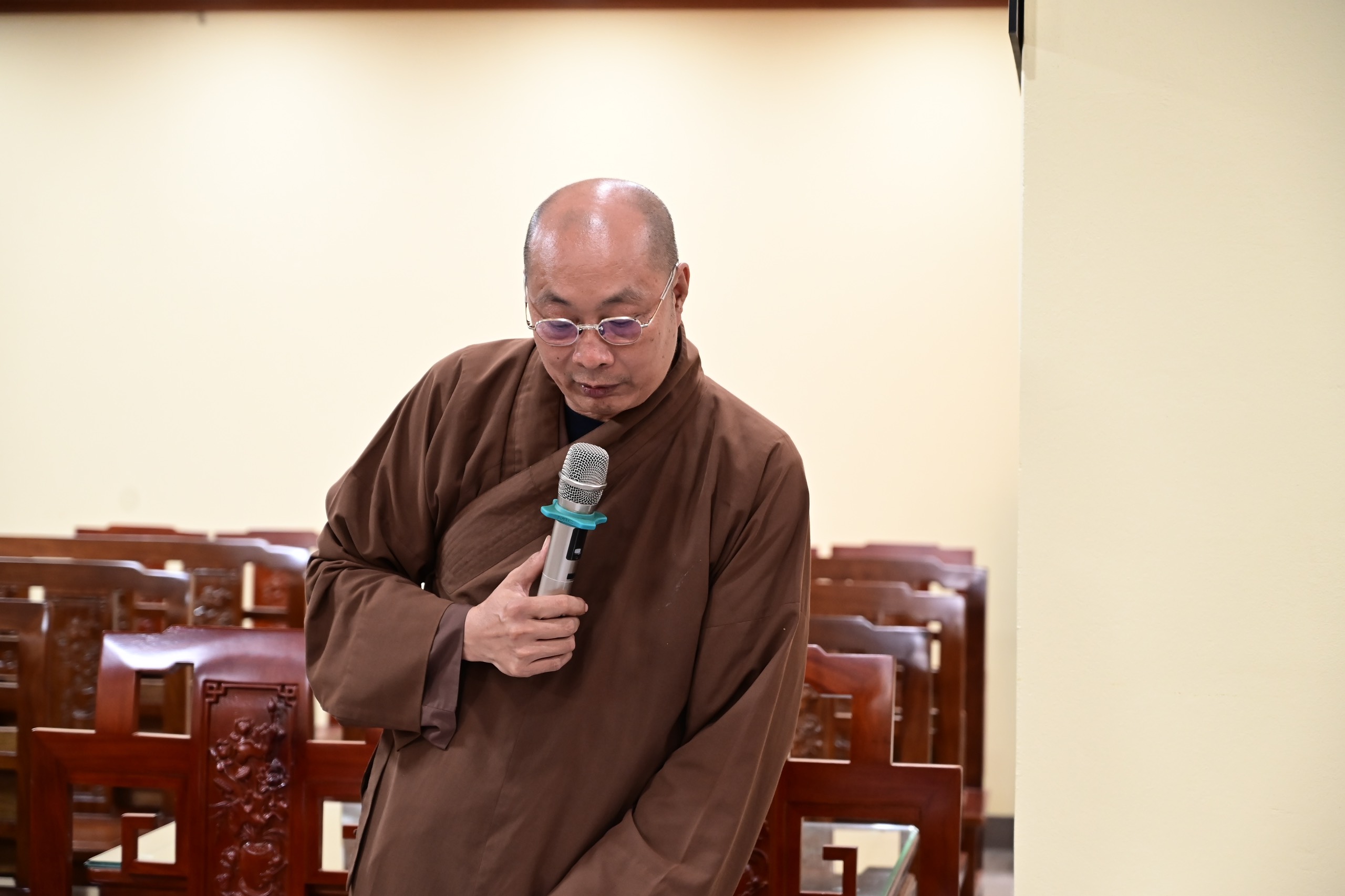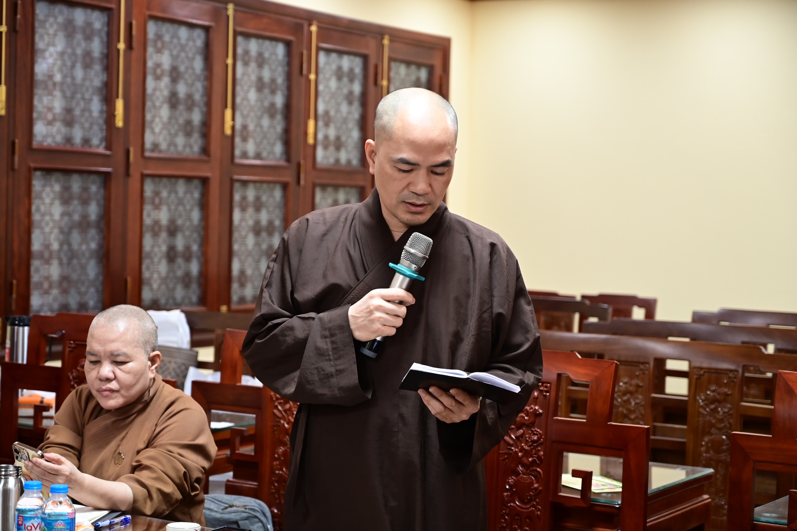 HT. Thích Thanh Giác – Phó trưởng Ban thường trực Ban trị sự phát biểu ý kiến về tổ chức khóa An cư kiết hạ PL. 2568