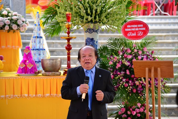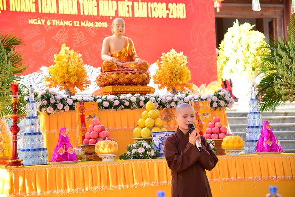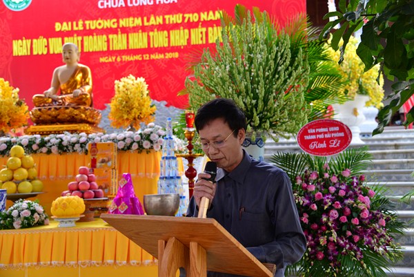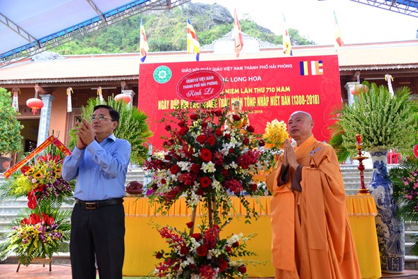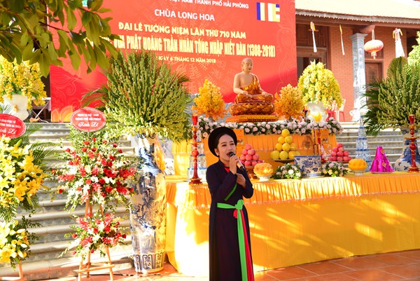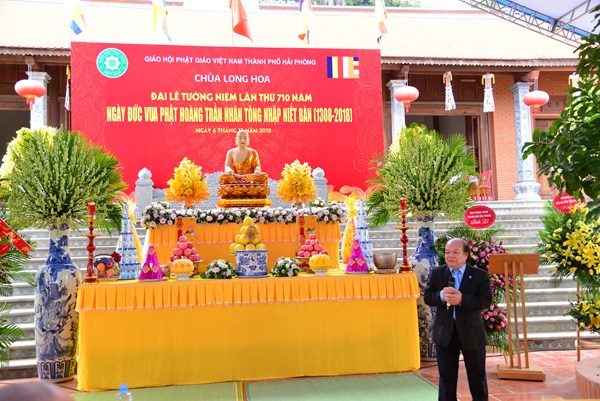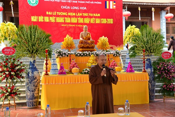 Nhân dịp này, Đại đức Thích Tục Thành – Ủy viên thường trực BTS GHPGVN thành phố Hải Phòng đã lời tưởng niệm Đức Vua – Phật Hoàng Trần Nhân Tông nhập niết bàn. Lời tưởng niệm có đoạn: “ Công đức hoằng dương Phật pháp của Tổ Sư sau khi ngộ đạo, Điều ngự Giác Hoàng, Vua Phật trần gian, trăm hoa đua nở, ngàn cỏ hương thơm, chín nước, mười mây vang rền tiếng Pháp, chống gậy trúc dạo chơi thiên hạ, nâng gót hài đại địa vững bền. Trên tinh thần sắc tướng vốn không, mượn cảnh huyễn, độ người như huyễn, tử sinh nào có, nương thuyền từ độ kẻ trong mê, như Tổ sư đã dạy ‘Tất cả pháp không diệt. Ai hiểu được như vầy. Thì chư Phật hiện tiền. Nào có đến có đi. Do đó, dù thời gian có đi qua hơn 700 năm, không gian có biến dịch, song công đức, đạo nghiệp của Tổ sư vẫn còn sống mãi trong trang sử vàng son của dân tộc, của Phật giáo Việt Nam trong sự nghiệp hộ quốc an dân, đoàn kết hòa hợp toàn dân, phát huy Đạo pháp trong thời đại ngày nay và mãi mãi về sau. GHPGVN hôm nay nguyện tiếp tục sự nghiệp quang huy của Tổ, xây dựng một Tịnh độ tại nhân gian bằng tinh thần Phật giáo Việt Nam, con người Việt Nam và Dân tộc Việt Nam”.