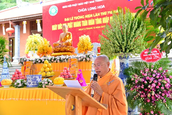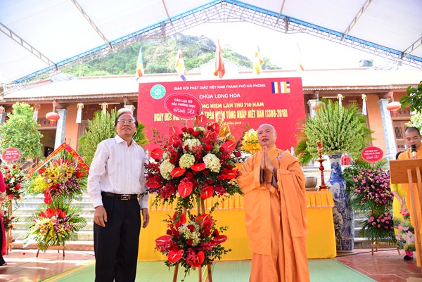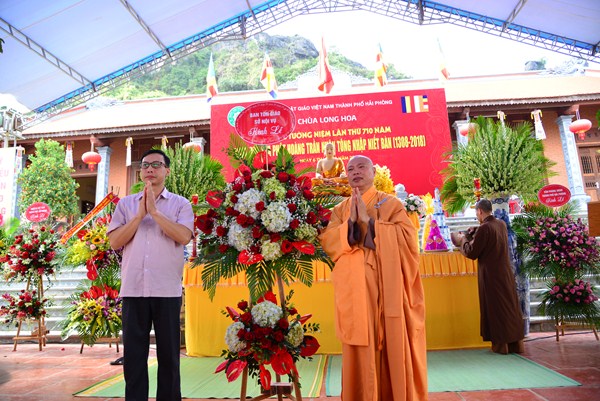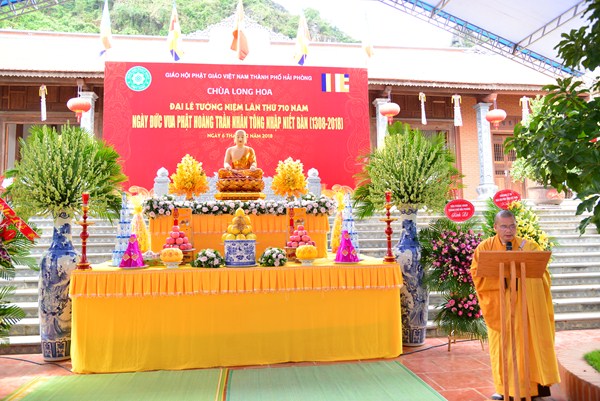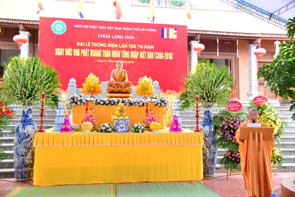 Thực hiện Thông bạch số 225/TB-HĐTS, ngày 01/11/2018 của Ban Thường trực HĐTS GHPGVN về việc hướng dẫn tổ chức Đại lễ tưởng niệm lần thứ 710 ngày Đức vua – Phật hoàng Trần Nhân Tông nhập Niết bàn, Sáng ngày 6/12 ( 30/11/Mậu Tuất), BTS GHPGVN thành phố Hải Phòng đã trang nghiêm trọng thể tổ chức Đại lễ tưởng niệm lần thứ 710 ngày Đức Vua Phật Hoàng Trần Nhân Tông nhập niết bàn ( 1038 – 2018) tại chùa Long Hoa – Ngôi chùa có tôn tượng Đức vua Phật Hoàng Trần Nhân Tông trên núi lớn nhất Hải Phòng, thuộc quần thể khu danh thắng Núi Voi, xã Trường Thành, Huyện An Lão, thành phố Hải Phòng.