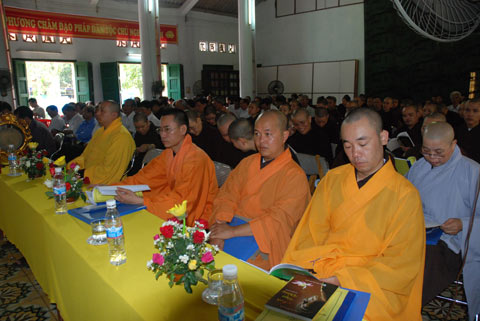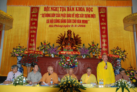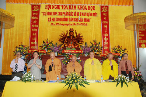 Chứng minh buổi tọa đàm có chư tôn đức phó chủ tịch Hội đồng Trị sự GHPGVN: HT. Thích Thiện Nhơn, TT. Thích Thanh Nhiễu, TT. Thích Quảng Tùng. Tham dự còn có TT. Thích Thanh Đạt và Tăng Ni Phật tử Thành hội PG Hải Phòng.