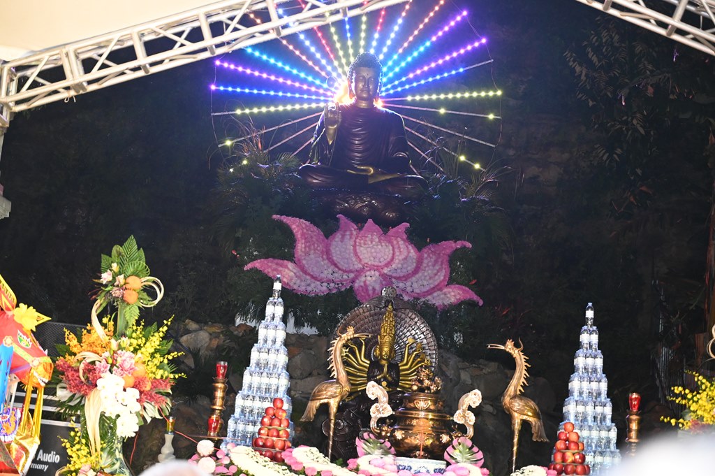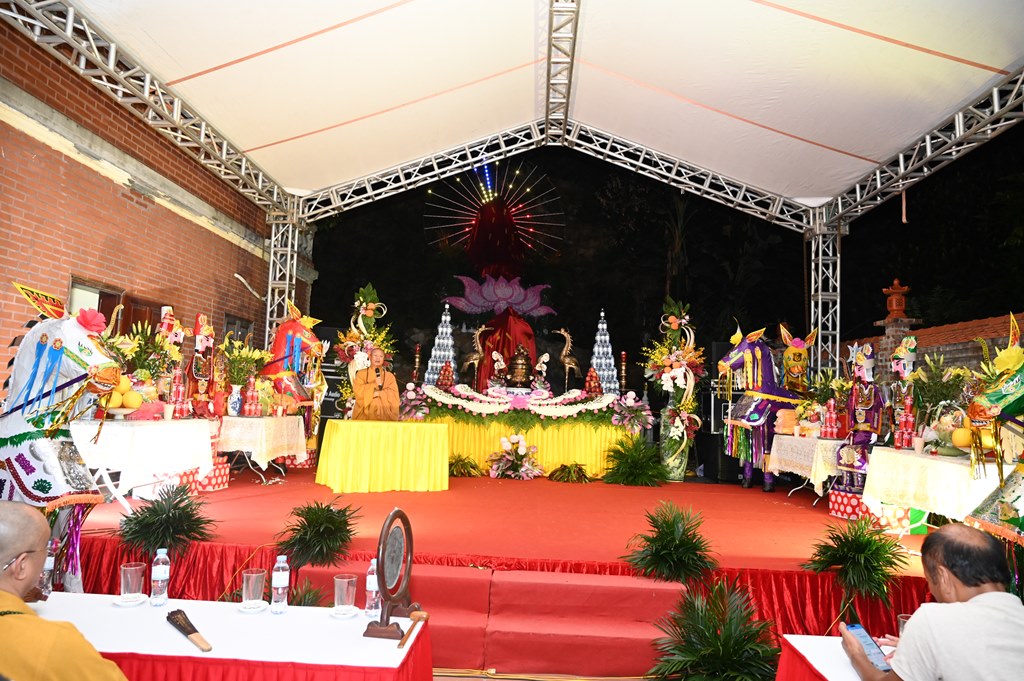Tại buổi lễ, chư tôn đức Tăng Ni đã trang nghiêm, thành kính cử hành nghi lễ sái tịnh, gia trì, chú nguyện và an vị Tôn tượng chư Phật, chư Bồ Tát, cầu nguyện thế giới hòa bình, chúng sinh an lạc, Phật pháp trường tồn. Đồng thời, cầu nguyện cho thiên tai, dịch họa sớm được đẩy lùi, cầu nguyện cho các nạn nhân không may bị thiệt mạng trong các cơn bão số 10 và số 11 vừa qua được siêu sinh về miền Cực Lạc. Buổi lễ đã khép lại trong không khí trang nghiêm, thành kính, ấm tình đạo vị.