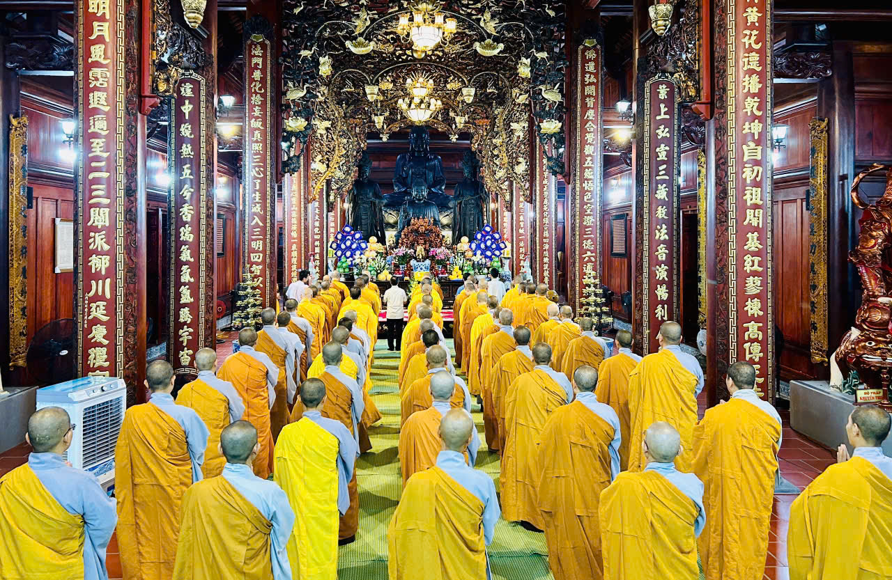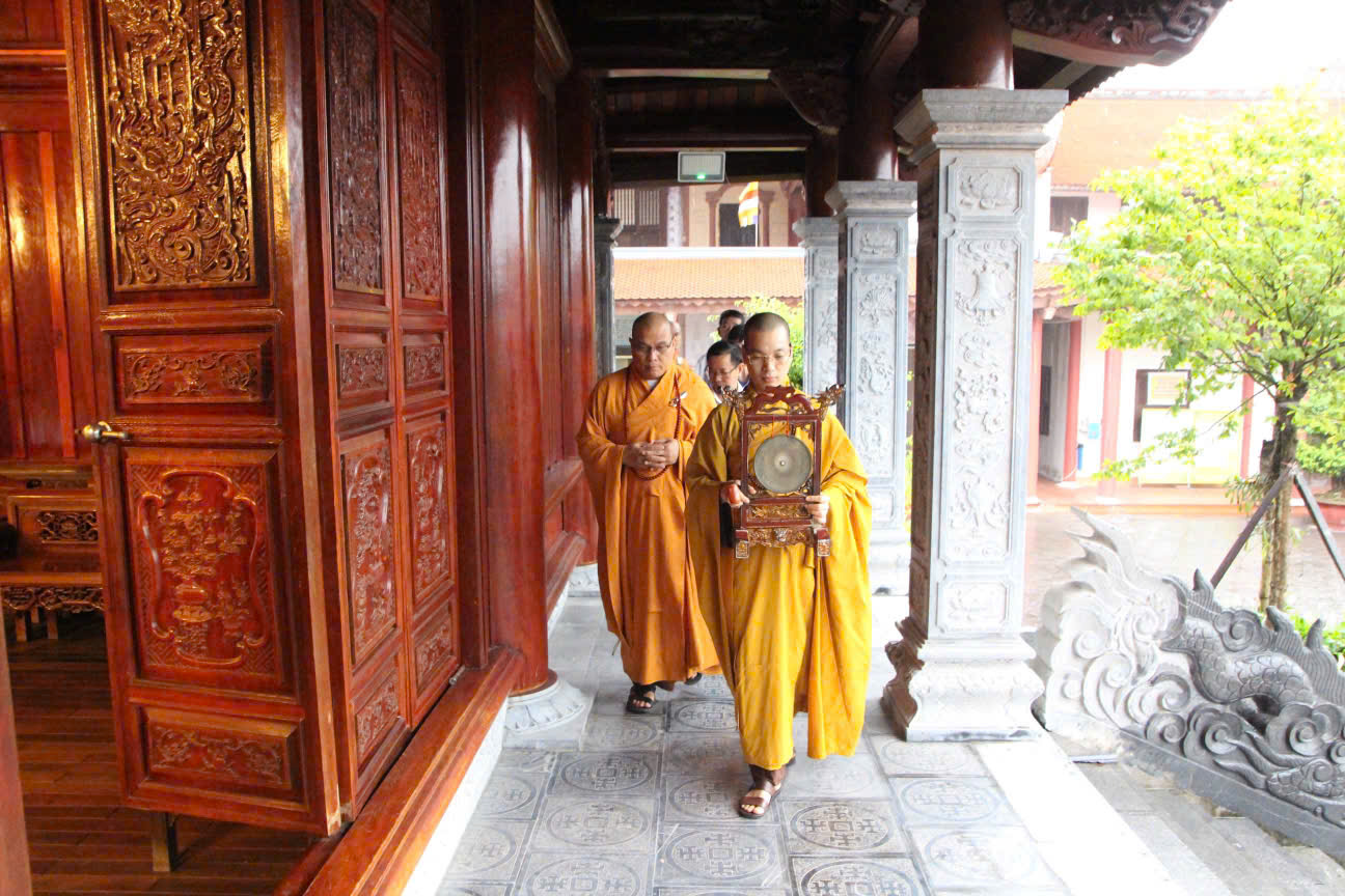 Thực hiện hướng dẫn HĐTS GHPGVN, sáng nay 1/7/2025, đúng 6 giờ, chư tôn đức lãnh đạo GHPGVN thành phố Hải Phòng (mới) và Tăng Ni hành giả an cư tại hạ trường Tổ đình Đống Cao, phường Tân Hưng, thành phố Hải Phòng đã trang nghiêm cử 3 hồi chuông trống Bát nhã cầu nguyện quốc thái dân an.
