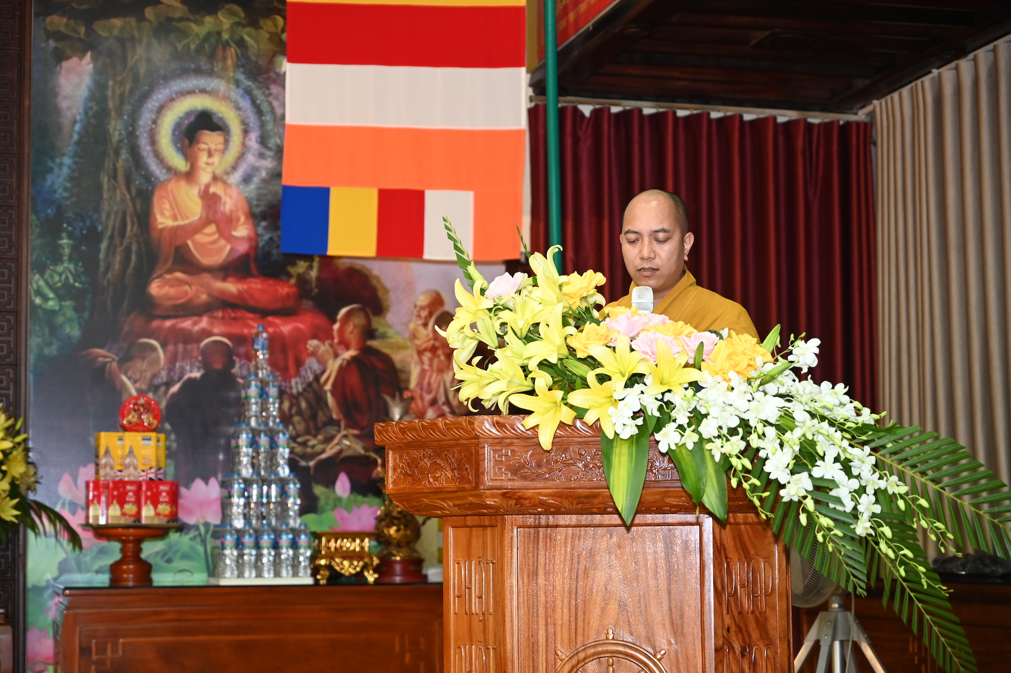 Đại đức Thích Bản Đức dẫn chương trình buổi lễ
