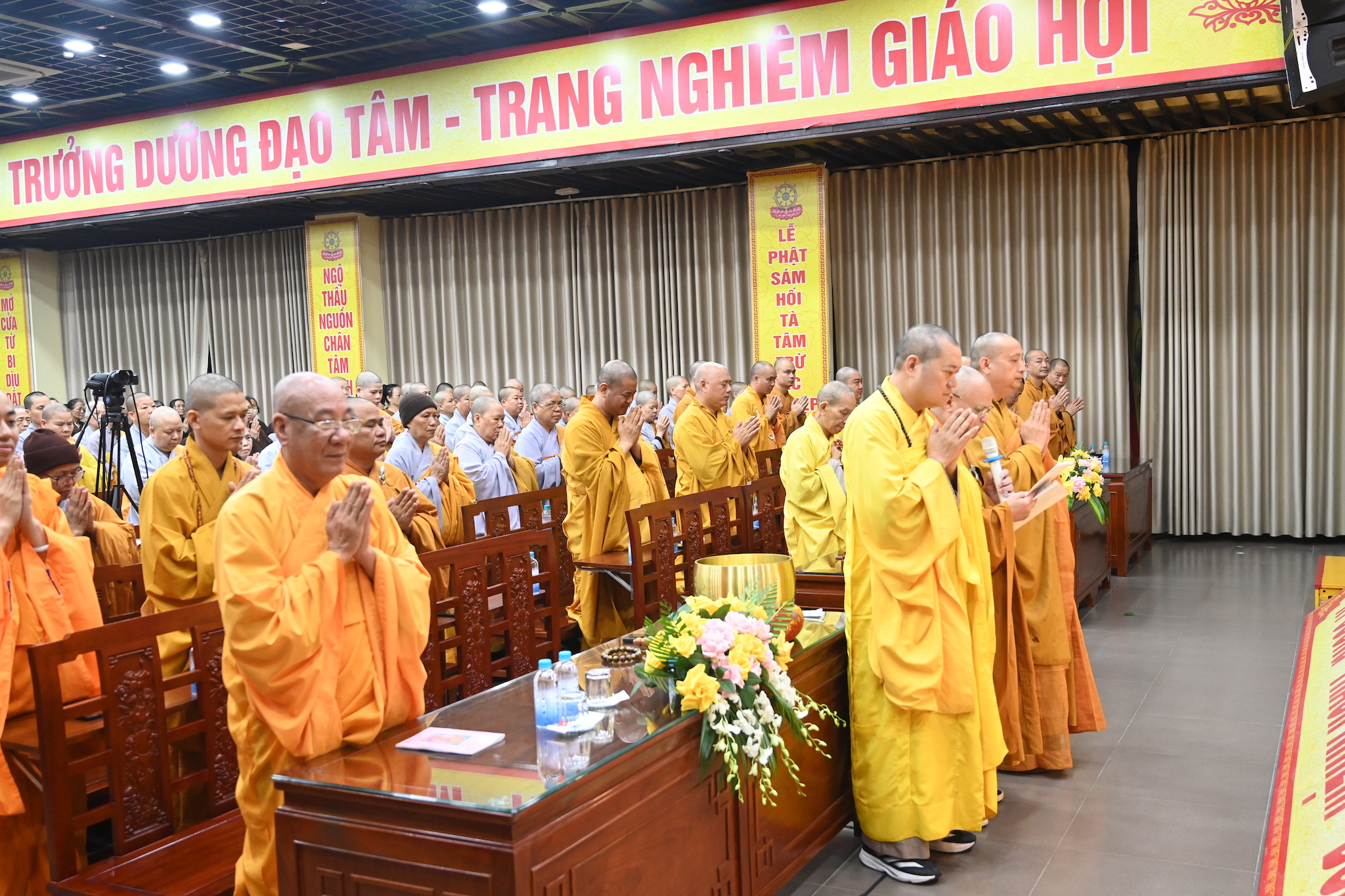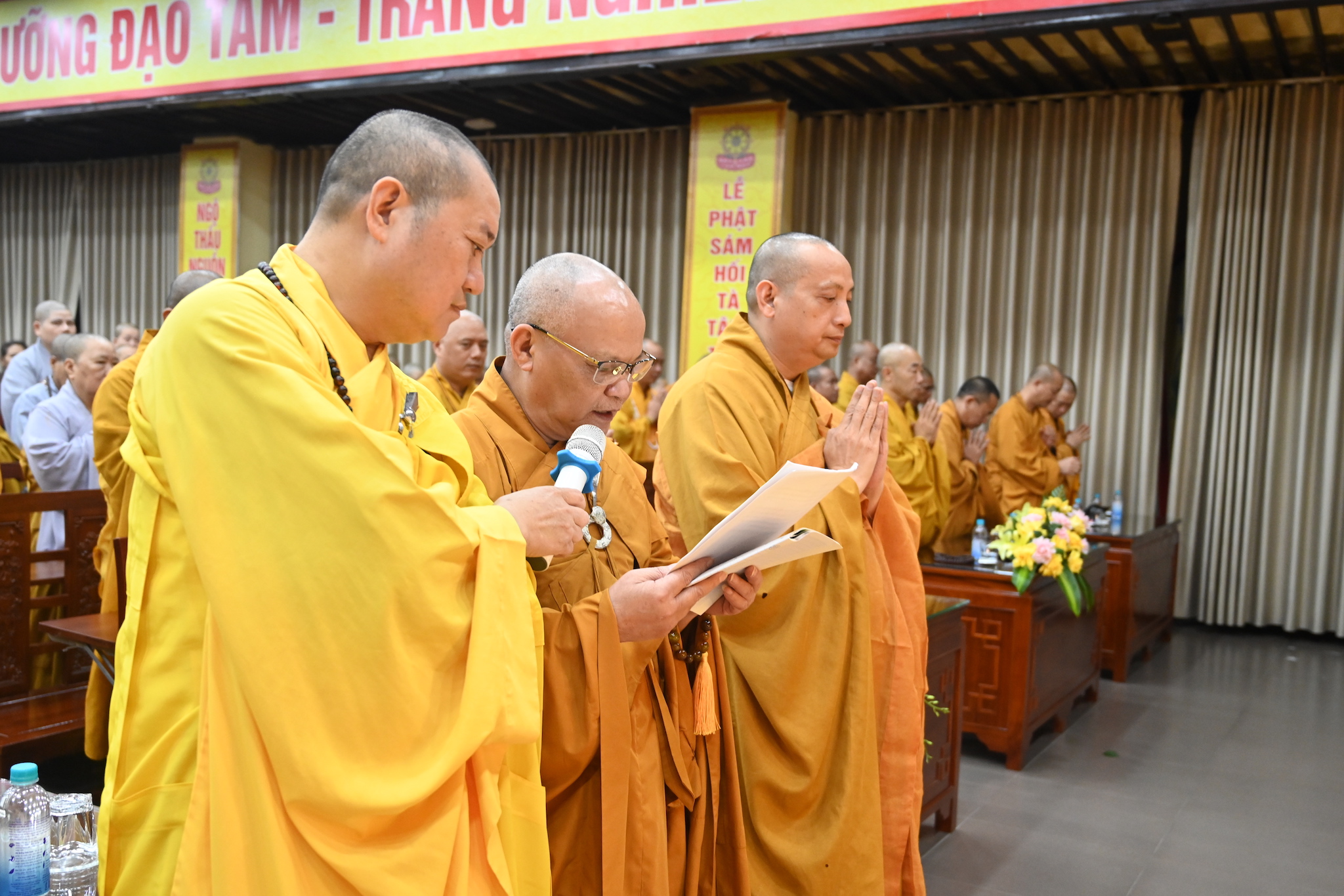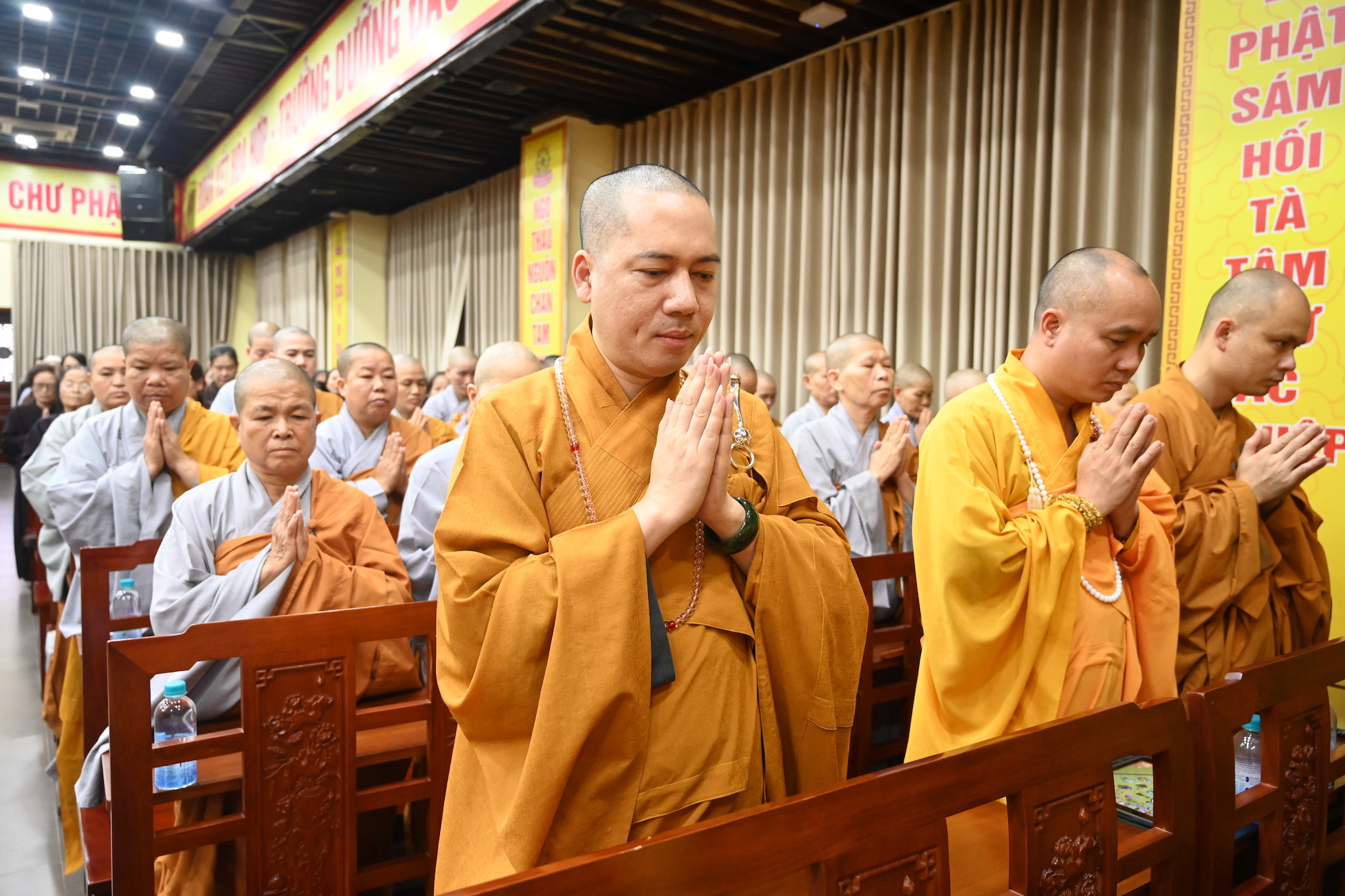Trước khi vân tập về đại giảng đường chùa Nam Hải để tham dự buổi lễ tạ pháp theo nghi thức truyền thống của Phật giáo, chư tôn đức hành giả an cư đã quang lâm chính điện để thực hiện nghi thức cúng Phật, cúng Tổ, lễ Phật cầu gia bị và lễ tạ Tam Bảo, chuẩn bị kết thúc 3 tháng cấm túc an cư, thúc liễm thân tâm, trau dồi tam vô lậu học.