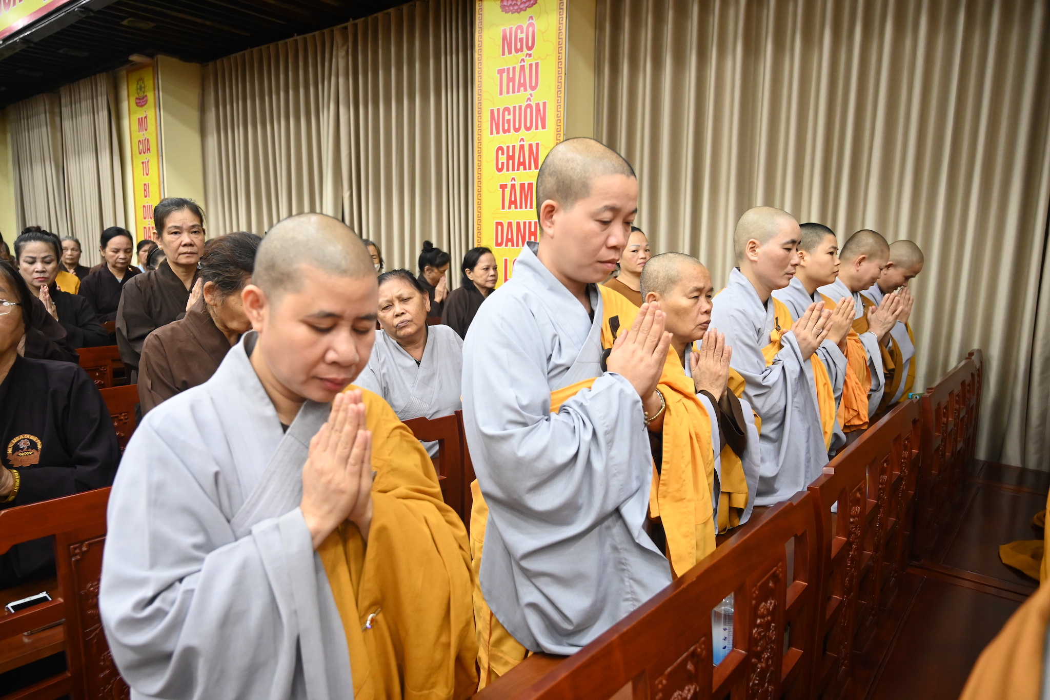 Toàn thể đại chúng trang nghiêm, thành kính tạ ơn Tam Bảo, khánh tuế, tri ân Hòa thượng Đường chủ hạ trường