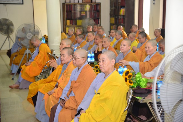 Trước khi kết thúc buổi lễ, Hòa thượng Thích Quảng Tùng đã ban đạo từ, tán thán công đức của các cấp chính quyền địa phương, Hòa thượng thủ chúng hạ trường cơ sở 1, các hành giả an cư, các ban chức sự trong hạ trường đã hoạt động tích cực làm cương lĩnh cho tăng chúng, tán thán công đức của các vị cư sỹ, Phật tử, những người ngoại hộ Phật Pháp, tạo điều kiện giúp đỡ chư tôn đức tăng ni yên tâm tu học thông qua tứ sự cúng dàng. Hòa thượng cũng có lời chúc mừng tới các hành giả an cư đã được thêm 1 tuổi đạo, đó là tuổi của phúc đức, tuổi của trí tuệ. Hòa thượng mong muốn sau khi về lại các trụ xứ, chư tôn đức tăng ni sẽ tiếp tục nỗ lực, tinh tiến tu học, nghiên cứu kinh điển, trau dồi tam vô lậu học. Đặc biệt hiện nay chúng ta đang sống trong thời đại công nghệ 4.0, các phương tiện thông tin đại chúng rất phát triển, nên chư tôn đức tăng ni có thể học tập, tra cứu bất cứ thời gian, địa điểm nào. Ngoài ra, hiện nay trình độ của hàng Phật tử tại gia ngày càng được nâng cao, đòi hỏi kiến thức Phật học của chư tôn đức tăng ni cũng ngày càng phải được cải thiện, nâng cao hơn nữa nhằm đáp ứng nhu cầu tu học Phật Pháp của Phật tử tại gia. Do đó, chư tôn đức tăng ni cần phải nghiên cứu chuyên sâu hơn nữa để có thể giảng dạy, chia sẻ cùng các Phật tử, giúp các Phật tử tinh tấn trên con đường tu học, cũng như hộ trì đắc lực cho Tam Bảo.