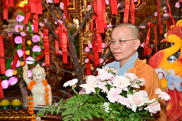 Chư tôn đức cử hành nghi lễ dâng hương, bạch Phật, tụng kinh cầu nguyện
