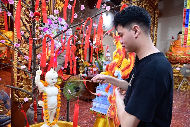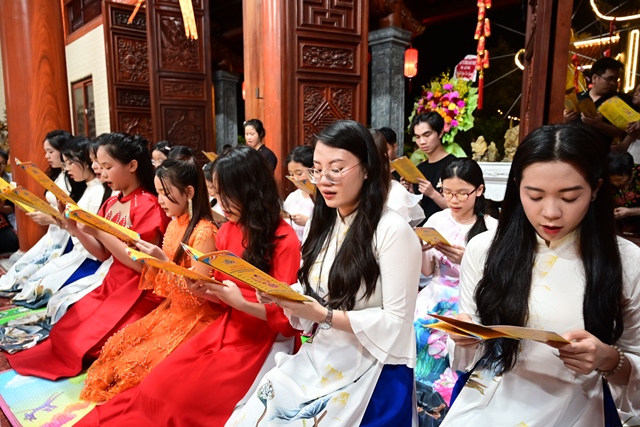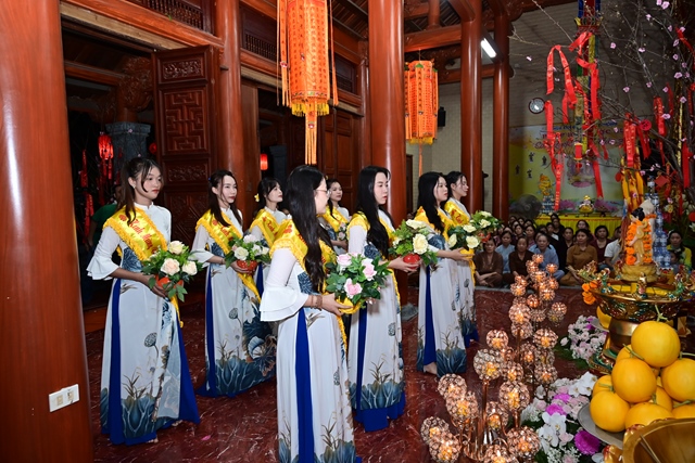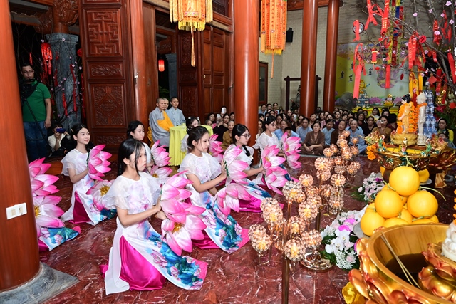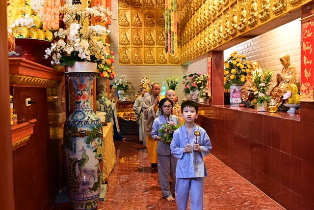 Các em thanh thiếu niên Phật tử dâng hoa cúng dàng