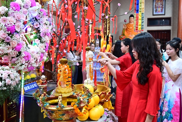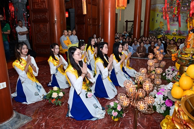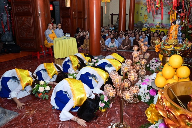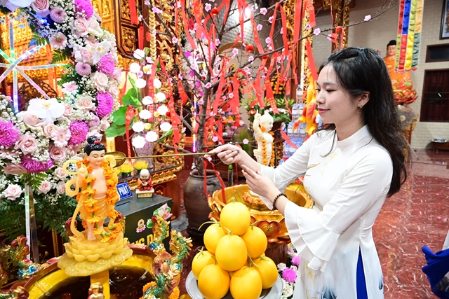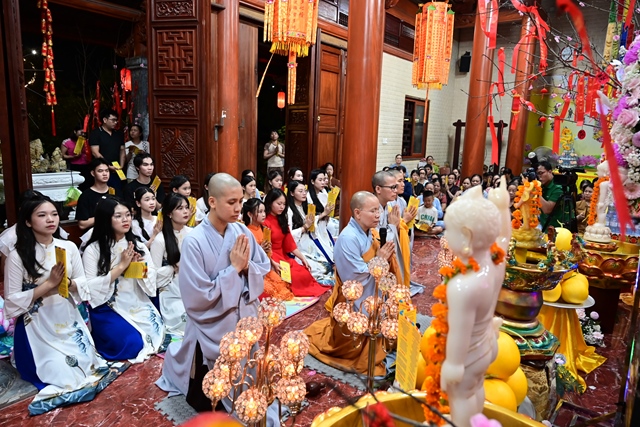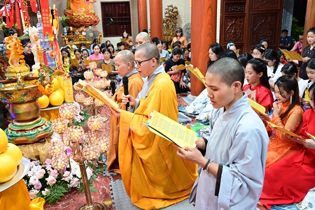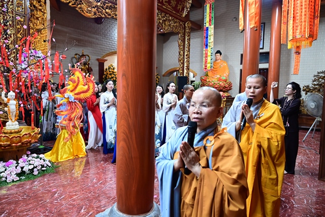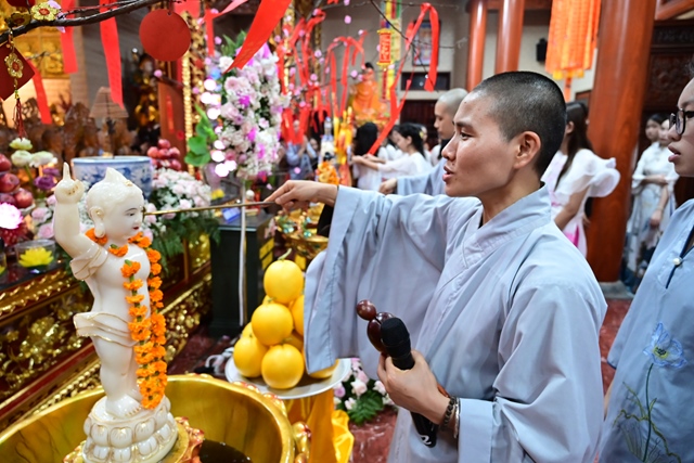 Trong không khí trang nghiêm của buổi lễ, chư tôn đức Ni và toàn thể đại chúng đã cử hành nghi lễ dâng hương, bạch Phật, tụng kinh cầu nguyện, kinh hành niệm danh hiệu ” Bản Sư Thích Ca Mâu Ni Phật”, dâng kệ tắm Phật và lễ Mộc dục theo nghi thức truyền thống của Phật giáo, đồng cầu nguyện cho thế giới hòa bình, chúng sinh an lạc, Đất nước phồn thịnh, Phật pháp được trường tồn.