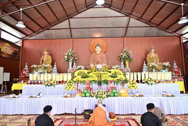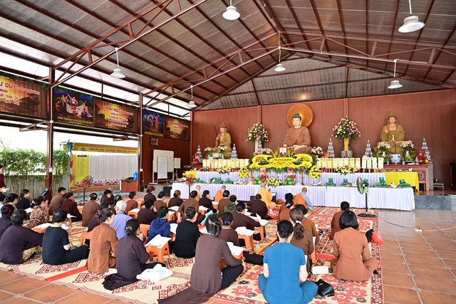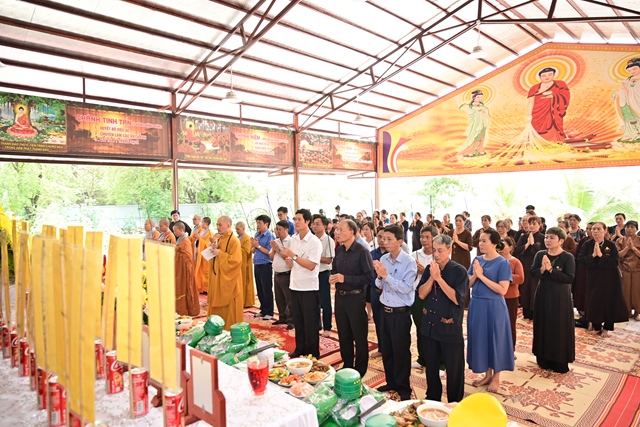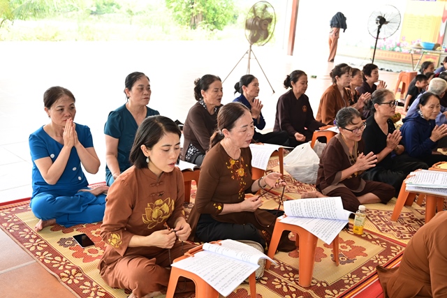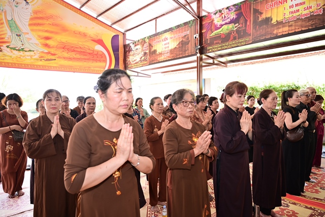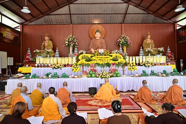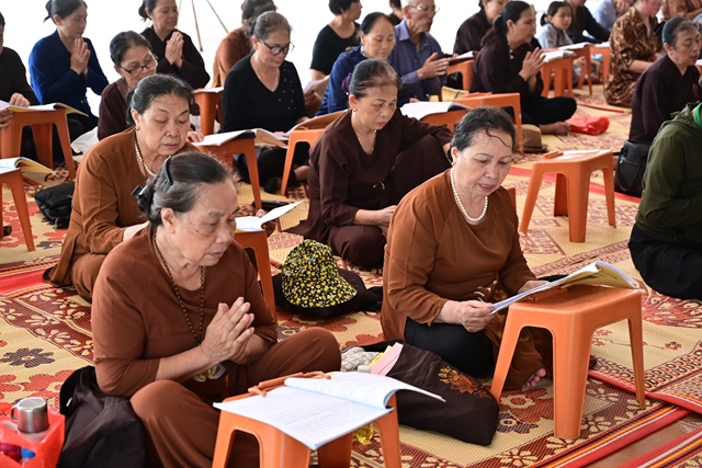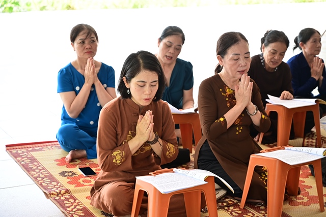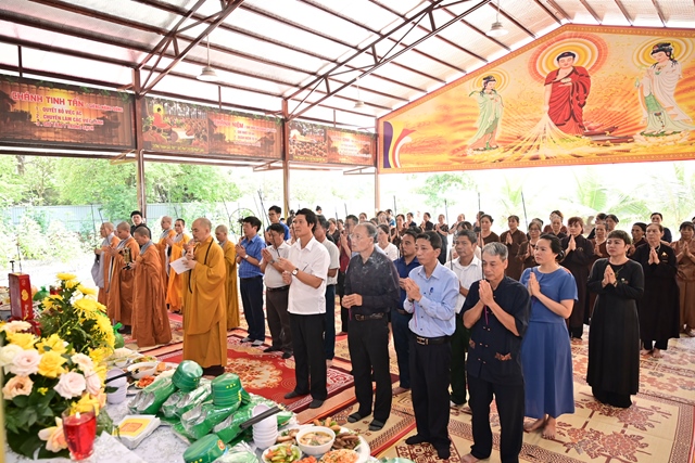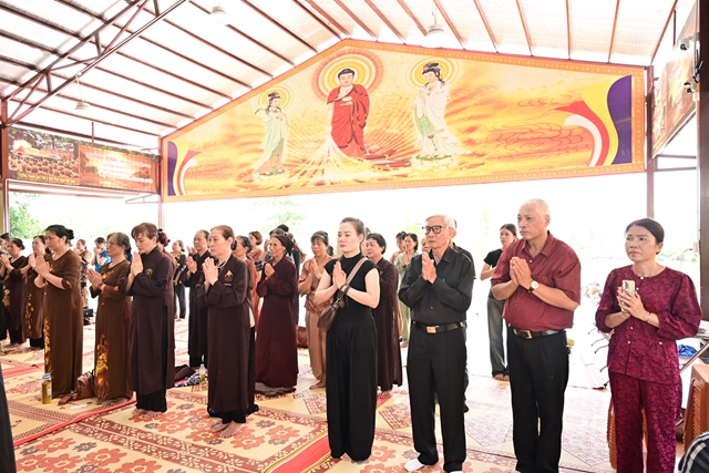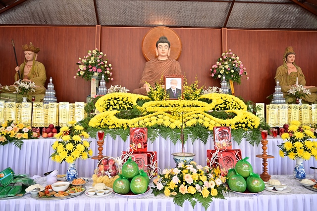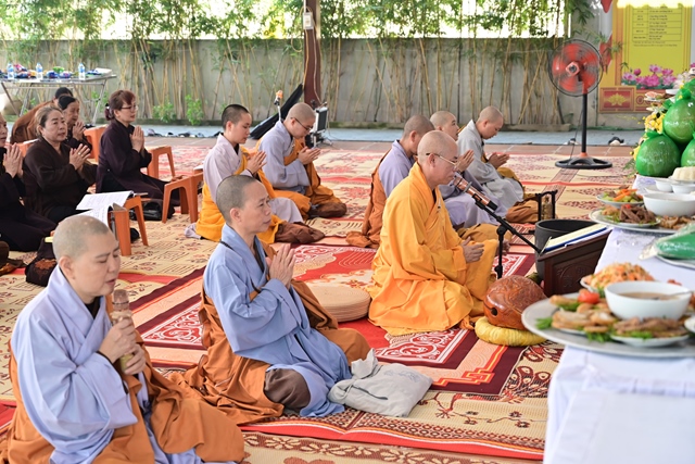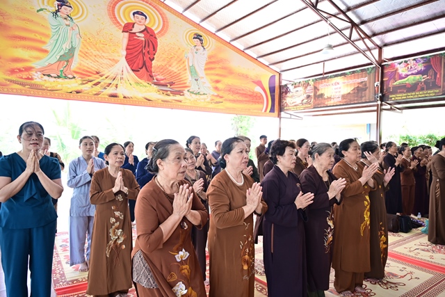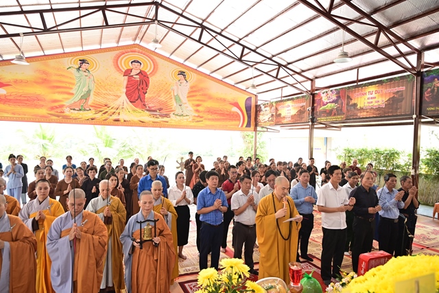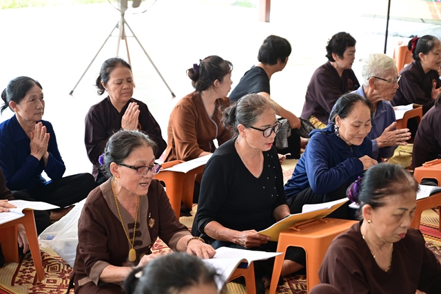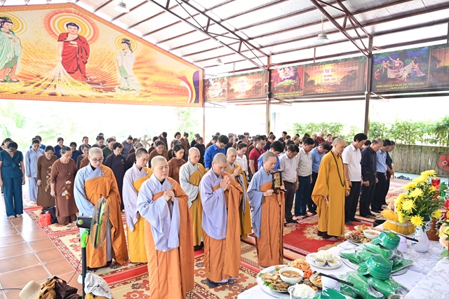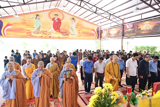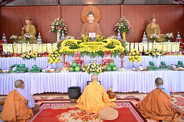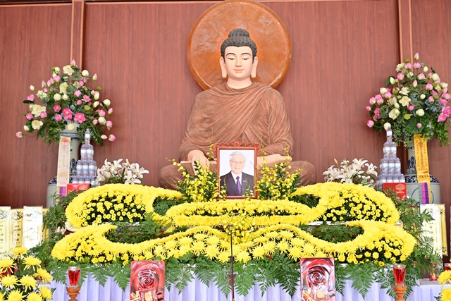 Chư tôn đức Tăng Ni và Phật tử tụng kinh cầu nguyện hương linh cố Tổng Bí thư Nguyễn Phú Trọng và các anh hùng liệt sỹ được siêu sinh về cảnh giới an lành