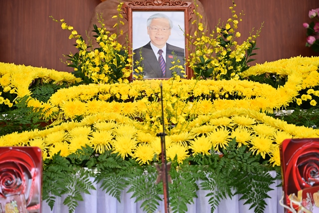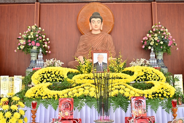 Ban thờ và di ảnh cố Tổng Bí thư Nguyễn Phú Trọng được thiết trí rất trang nghiêm