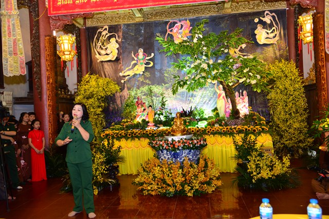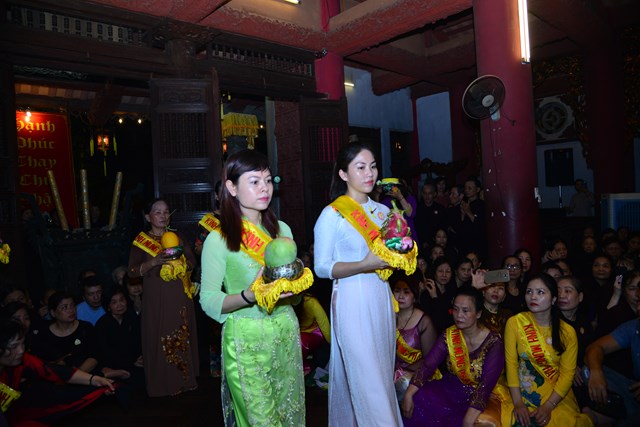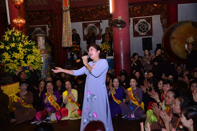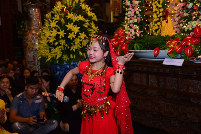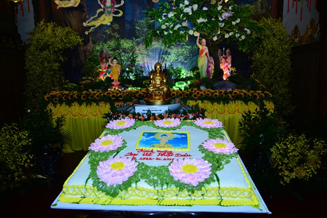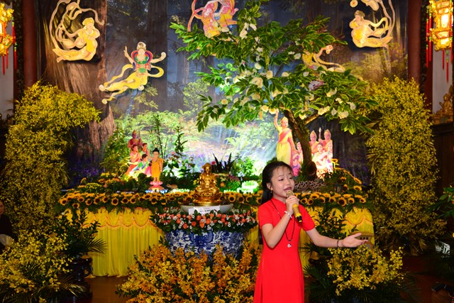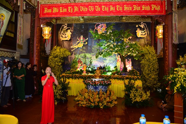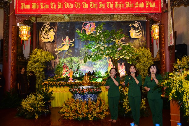 Sau khi khóa lễ trì chú, bao sái tượng Phật và Bồ Tát tại chính điện được chu viên, các Phật tử đạo tràng chuyên tu Tịnh Độ cùa chùa Đỏ đã thành kính dâng lục cúng dường gồm: Hương, đăng, hoa, trà, quả, thực lên Đức từ phụ Bản Sư Thích Ca Mâu Ni Phật. Đồng thời, dâng lời ca, tiếng hát với các ca khúc mang âm hưởng Phật giáo vui tươi, hoan hỷ đón mừng bậc đại giác ngộ thị hiện ở cõi Ta Bà.