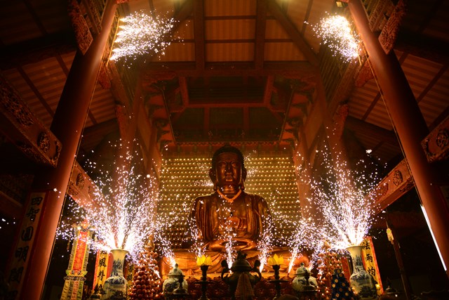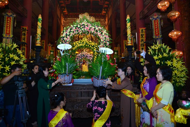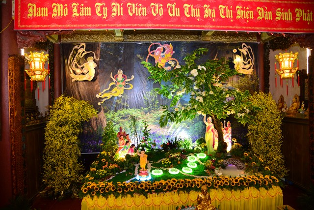 Đúng 4h sáng rằm tháng 4 năm Kỷ Hợi ( nhằm ngày 19/05/2019), khi chuông trống bát nhã nổi lên, Ban cung nghinh đã cung thỉnh Đại đức Thích Trường Xuân – Trụ trì chùa Linh Độ, trưởng Ban tổ chức đại lễ và chư tăng trong chốn trụ xứ quang lâm chính điện cử hành nghi lễ niêm hương, bạch Phật, trì chú đại bi, thập chú đón mừng thái tử Tất Đạt Đa ra đời, cầu nguyện thế giới hòa bình, chúng sinh an lạc. Toàn thể đại chúng đã một lòng chí thiết, chí thành, trang nghiêm, thành kính đối trước Phật đài, dâng nén tâm hương thành kính nhất cúng dàng lên Đức từ phụ Bản Sư Thích Ca Mâu Ni Phật nhân kỷ niệm 2.643 năm ngày sinh của Ngài.