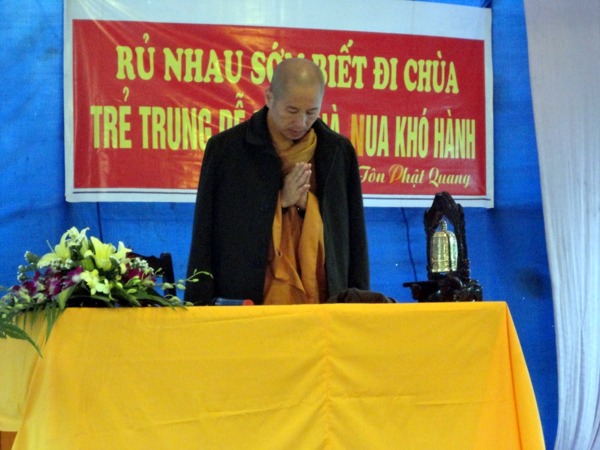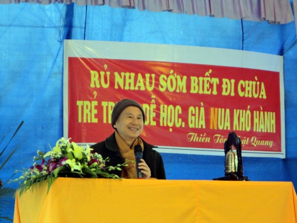 Để kết thúc bài nói chuyện, Thượng tọa nhấn mạnh: Đền thờ phải thể hiện nền văn hóa văn minh, hiện đại, tránh mê tín dị đoan. Chùa chiền phải được phục hiện lại, cần đưa đạo lý của Giáo Hội Phật Giáo Việt Nam về để giáo hóa dân làng.