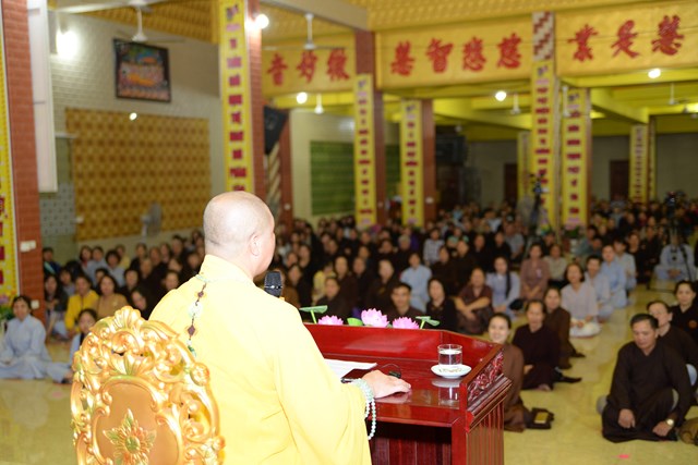 Thông qua thời pháp thoại, thượng tọa giảng sư cũng chỉ cho các Phật tử cách đối diện với thực tại. Thứ nhất, là chúng ta phải quan sát, giữ gìn lời nói của chính mình hay còn gọi là tu khẩu nghiệp. Thứ hai, là phải sống chung thủy, đặc biệt là giới trẻ hiện nay đại đa số là chọn lối sống buông thả, thiếu đi sự chung thủy. Như chúng ta đã biết Đức Phật đã từng dạy chúng ta phải sống chung thủy vì chung thủy là nguyên nhân chính đem đến hạnh phúc cho mỗi gia đình, khi có sự chung thủy sẽ tích lũy được công đức và thay đổi được vận mệnh của chính mình. Điều thứ ba là chúng ta phải tập sống khiêm tốn vì khiêm tốn cũng có nghĩa là chúng ta đang giảm trừ phiền não, diệt trừ được cái tôi của chính mình, đồng thời khiêm tốn cũng là phương thức để diệt trừ ngã chấp, diệt trừ tâm mặc cảm, tự ti và diệt trừ được cái tâm ngã mạn…Phương thức thứ tư để thay đổi vận mệnh, đó là phải hạn chế sát sinh vì khi chúng ta tu tập mà thiếu đi yếu tố từ bi thì pháp môn đó chắc hẳn sẽ không mang lại niềm an lạc cho chính mình. Ngoài ra, để thay đổi được vận mệnh thì chúng ta cần phải sống thật lòng và phải biết tôn trọng người đối diện. Trên đây là những yếu tố cơ bản để có thể thay đổi được vận mệnh. Và cuối cùng thượng tọa giảng sư đã nhấn mạnh rằng: “ Người có trí tuệ sẽ thay đổi được vận mệnh của chính mình”.